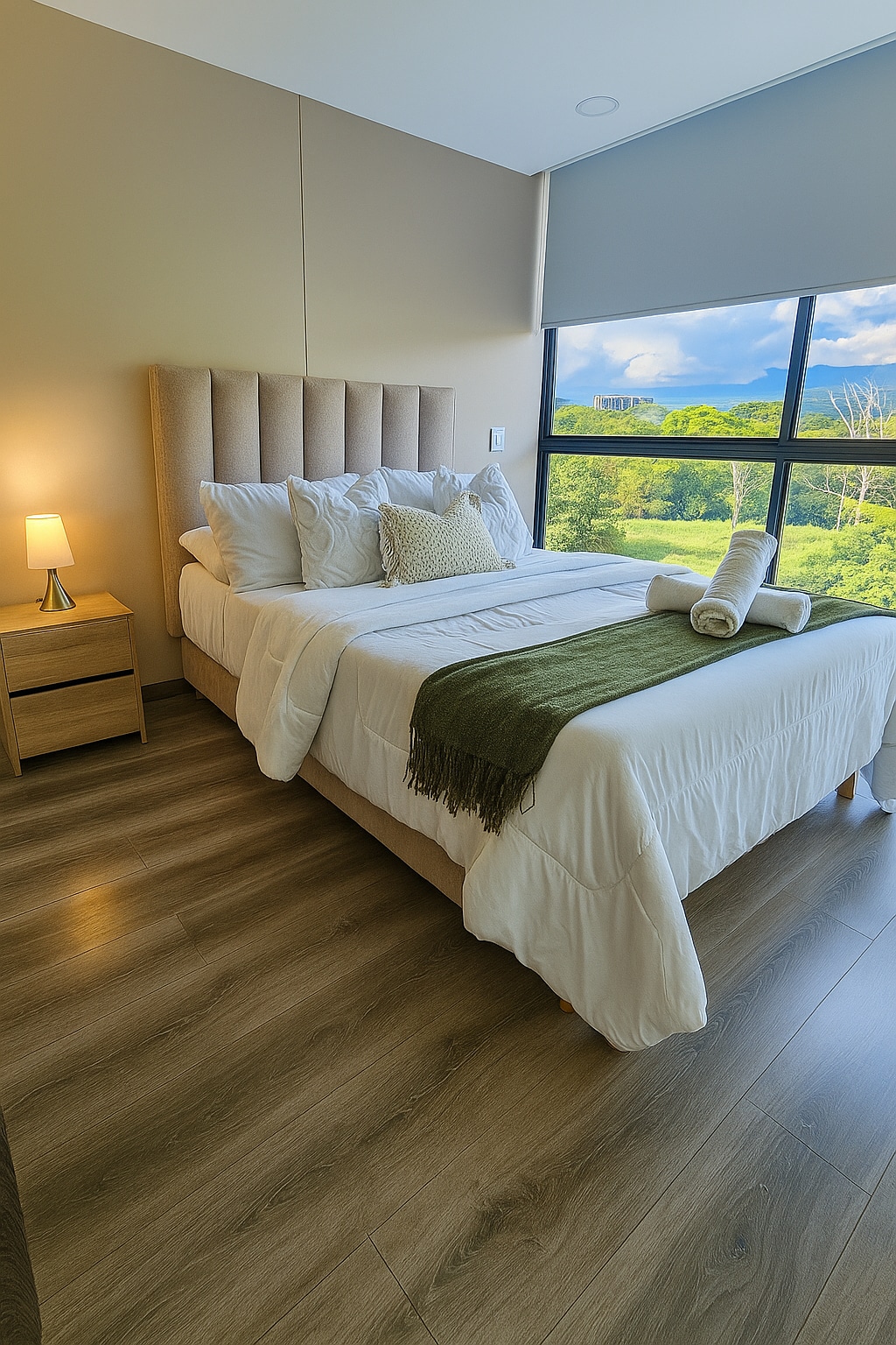Relájate en esta escapada única y tranquila. Este apto con diseño moderno y una vista excepcional cuenta con todas las amenidades para hacer de tu estadía algo inolvidable, se encuentra ubicado en una de las zonas más exclusivas y seguras, cerca a C. comerciales, supermercados, peluquerías, y una de las principales zonas de gastronomía. Pensado en tu comodidad contarás con un relajante jacuzzi privado, que será ideal al llegar de un día de viaje, paseo o trabajo. Acceso a parqueadero privado.