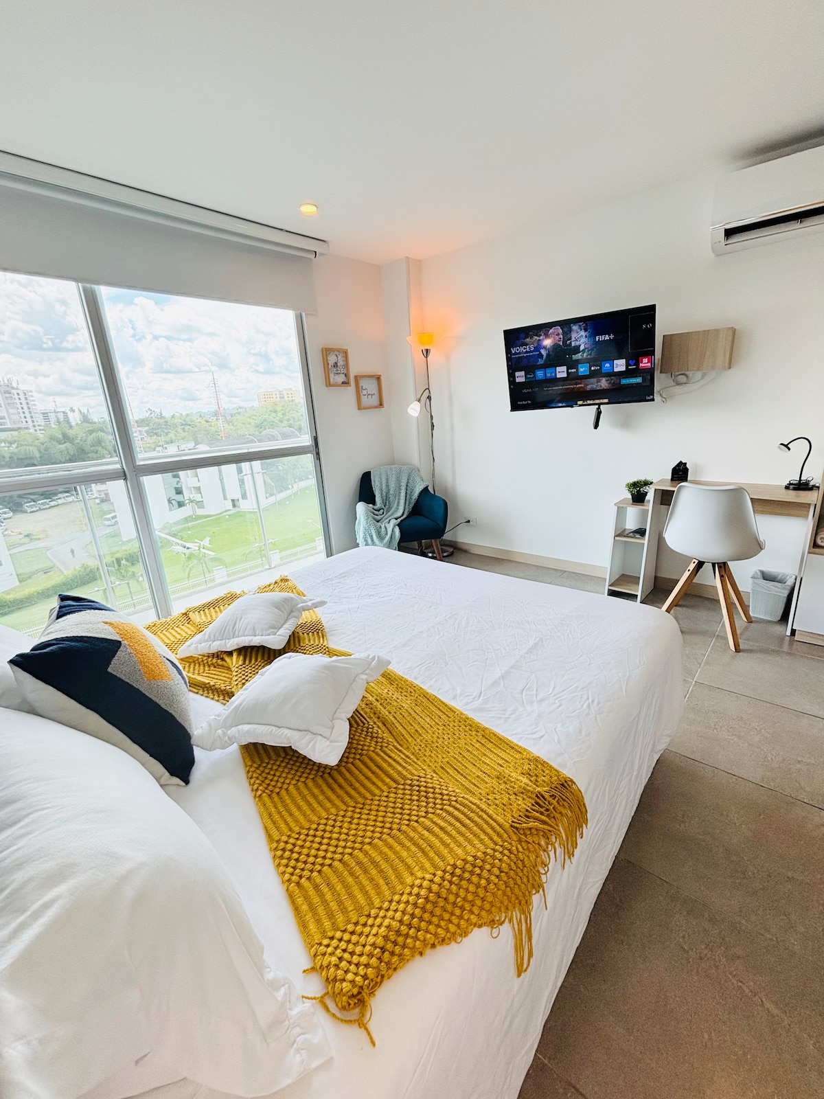 Nuevo y hermoso apartaestudio pensado en tu comodidad y descanso. Estamos ubicados en zona estratégica de Armenia desde donde podrás movilizarte fácilmente a cualquier lugar de la ciudad. El edificio cuenta con espectaculares zonas comunes y una vista inmejorable hacia la coordillera. Si vienes para estancias largas o cortas, si vienes para vacaciones, trabajo o por motivos de salud, somos el espacio perfecto para el plan que quieras.