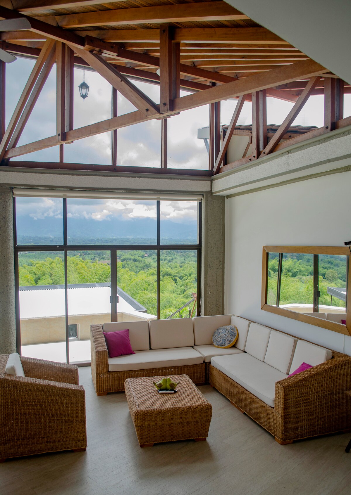 Escápate a una casa campestre rodeada de naturaleza y silencio, a solo 5 minutos del parque principal de Filandia. Disfruta noches de fogata, paisajes cafeteros y espacios amplios para compartir con familia o amigos. Un refugio de diseño en medio del paisaje cafetero colombiano. Vive una experiencia de tranquilidad y naturaleza en estado puro. Disfruta de una vista panorámica sobre el bosque y los valles de Quindío. Amaneceres inolvidables, cielos estrellados y atardeceres mágicos