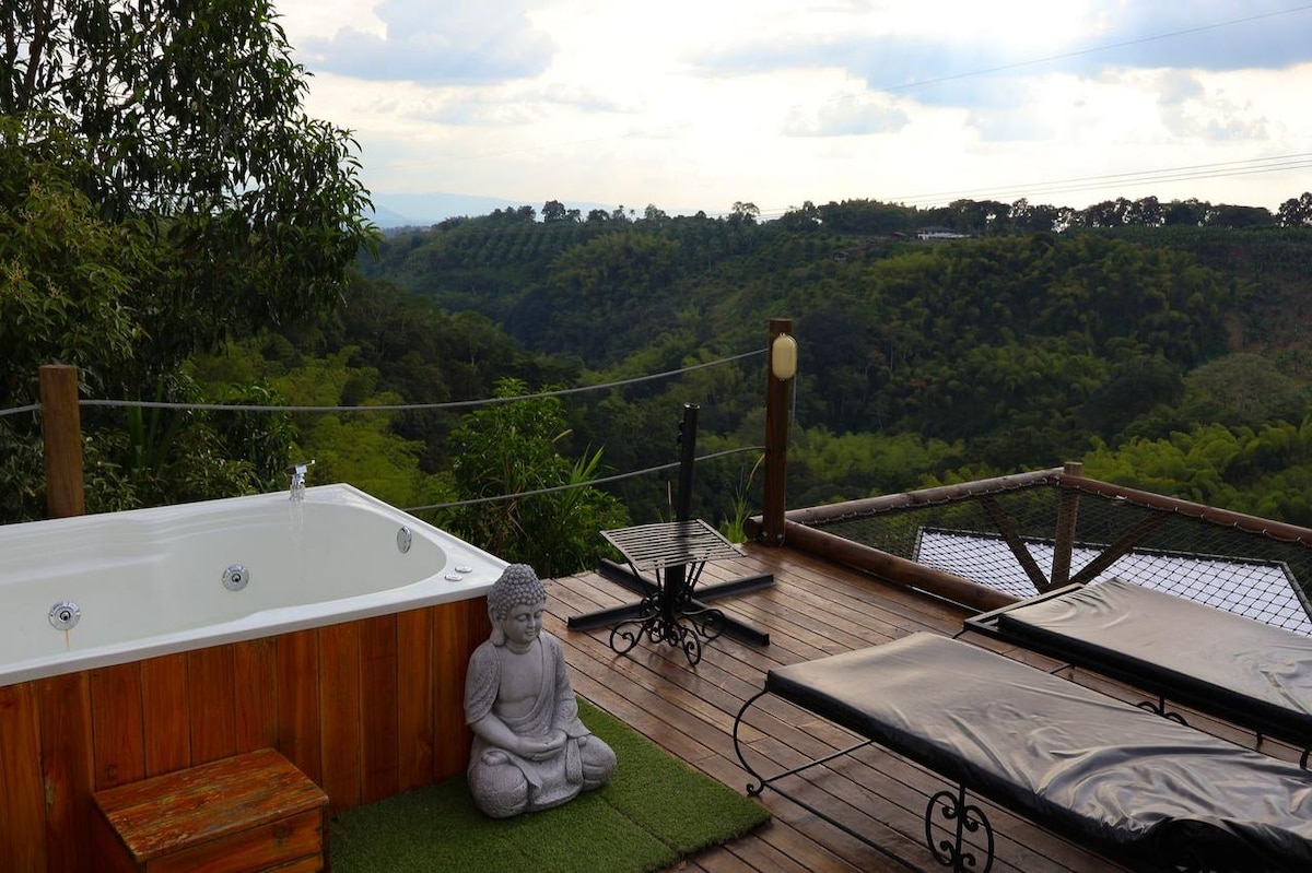 Disconnect from your worries in this spacious and serene space. Coffee farm where you can connect your mind and body with nature, enjoy a pleasant climate and beautiful sunsets. Perfect Place To rest and disconnect from everyday life you will be able to spend unforgettable moments You will enjoy the birds singing, it is ideal for couples - It has a transparent Dome Glamping, Jacuzzi, outdoor shower, Breakfast 🍳 Included.