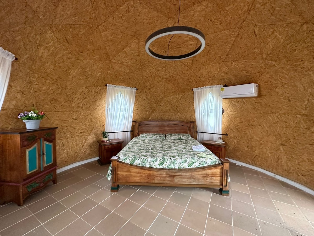Beautiful villa with a domed bedroom, queen-size bed, private bathroom, and bathtub. Enjoy the charming setting of this romantic spot surrounded by nature.