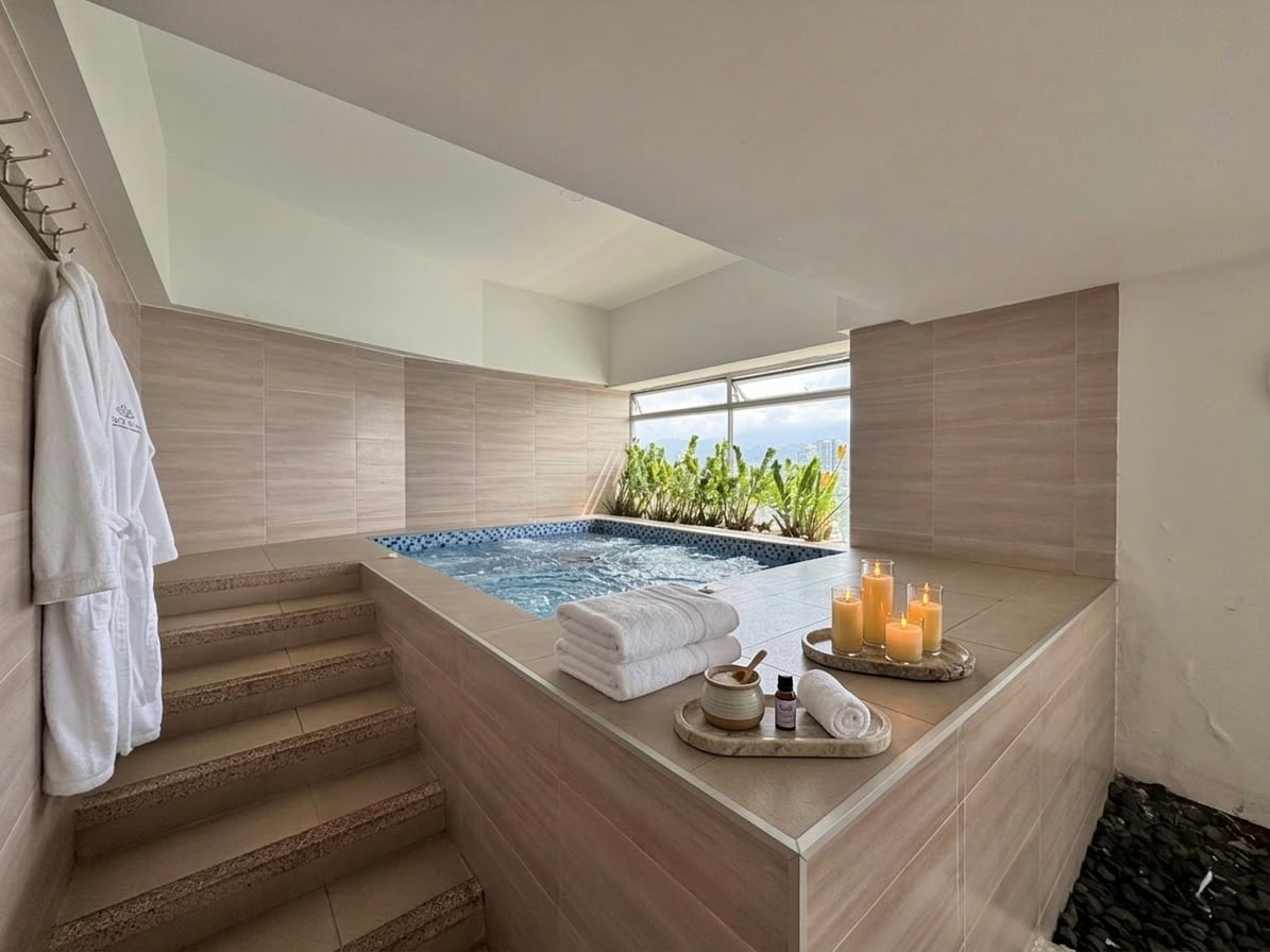 🏡 Modern 6th-floor apartment with 2 bedrooms and 2 bathrooms (one ensuite). 🛏️ Sleeping arrangements: Master bedroom: Double bed + pull-out double bed. Bedroom 2: Double bed + single bed. Living room: Double sofa bed. 🌟 Prime location near Parque del Café, PANACA, Salento, and Filandia. 💎 Pool, jacuzzi, steam room, gym, private parking, and more. ✨ Book now and enjoy the best experience in Quindío!