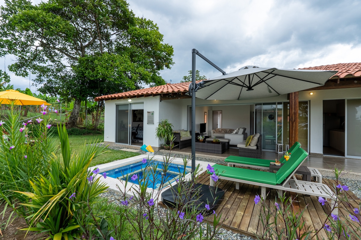 Discover tranquility in our new rural retreat near Armenia, immersed in the charm of the Coffee region of Colombia. If you are looking to get away from the hustle and bustle of the big cities, look no more. Your perfect getaway offers: 🛏️ King size bed in the Master room 🛁 4 full bathrooms 👨🍳Fully equipped kitchen 👙Relaxing heated jacuzzi 🃏Family room with games 💻 Office spaces with high speed internet 🌷Private community full of nature 🎢 Close to main attractions