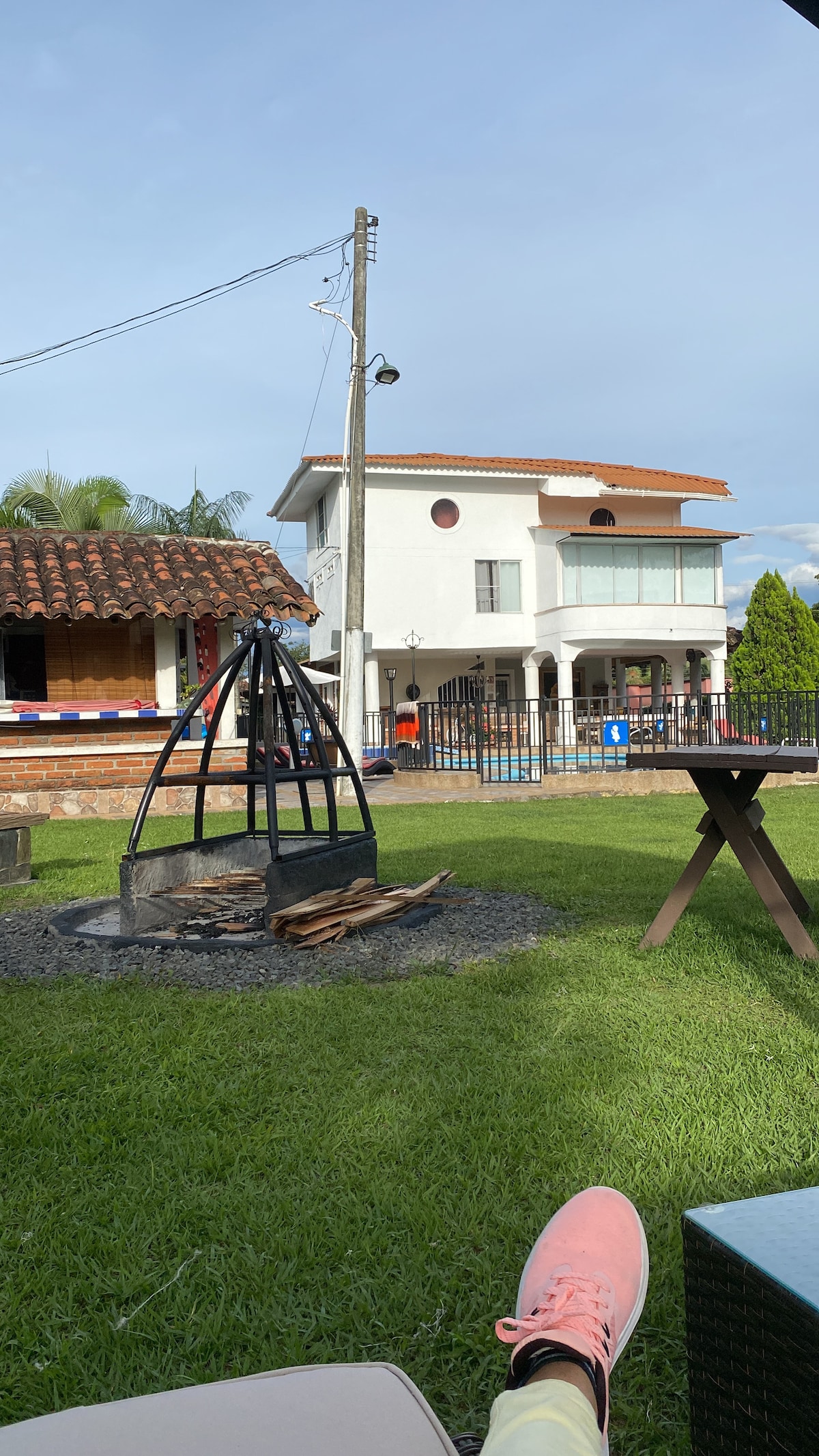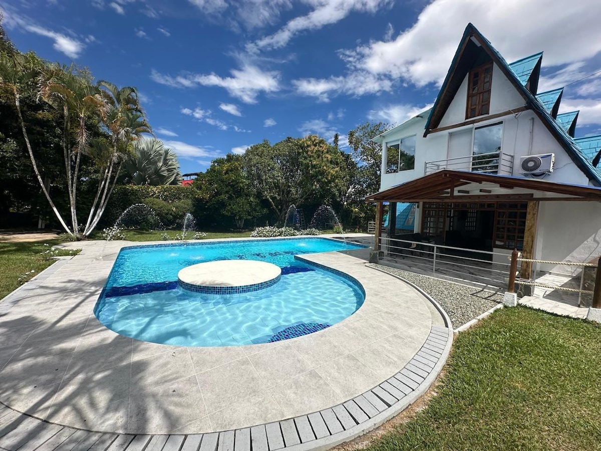 comparte y descansa con tus seres queridos un lugar en medio de la naturaleza, completamente privado, seguro, sin ruidos exteriores, escuchando el canto de los animales y ubicado a tan sólo 10 minutos de Quimbaya Q. Encuentras wifi, directv, servicio de elaboración de alimentos (no incluido en la tarifa), asador, piscina, hamacas, entre otros servicios.