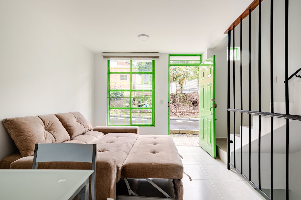 New Beautifully Designed Space. Enjoy having a morning coffee on the terrace with breathtaking views of the coffee region landscape. Carefully setup space where every corner was designed and fully A/C system. The first floor has 2 very comfortable Double size Sofa Beds, 75"TV with Netflix, Big furnished Terrace, Equipped Kitchen, Washer/Dryer, Expandable Dining Table and a full Bathroom. Second Floor has Master bedroom with 55"TV, an elegant double bathroom and an open space with Bunk Bed.