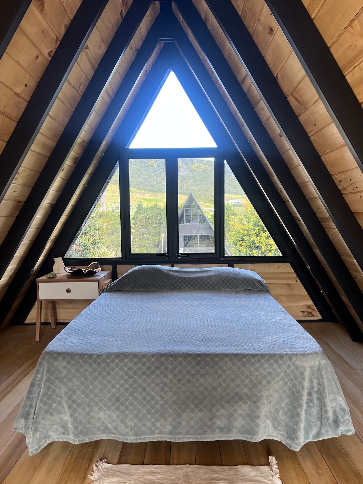 Absorb the warmth and light of open-plan living, with luxurious 9-foot bedroom ceilings, a 20-foot vaulted ceiling with skylight in the common/kitchen area, and oversized windows throughout for a peaceful, quiet, and relaxing stay in Cuenca. ⚡️ 24/7 hot water, Wi-Fi, and electricity for your devices thanks to our grid-tied backup battery system. Note: some high-power appliances like the blow-drier and water kettle do not work during power outages.