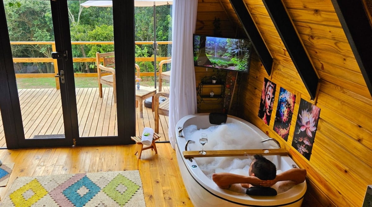 O Loft São José é uma cabana completa e luxuosa com fechamento todo em vidro ( teto e paredes ), cortinas motorizadas de teto, projetor de 100'', Banheira de imersão interna, lareira interna, fire pit, jacuzzi externa, sauna e lounge externo tudo isso construído sobre um deck de madeira com vista para a mata e amplo espaço externo, para curtir o contato com a natureza com todo muito conforto, luxo, privacidade e tecnologia. Seus melhores momentos estão aqui!