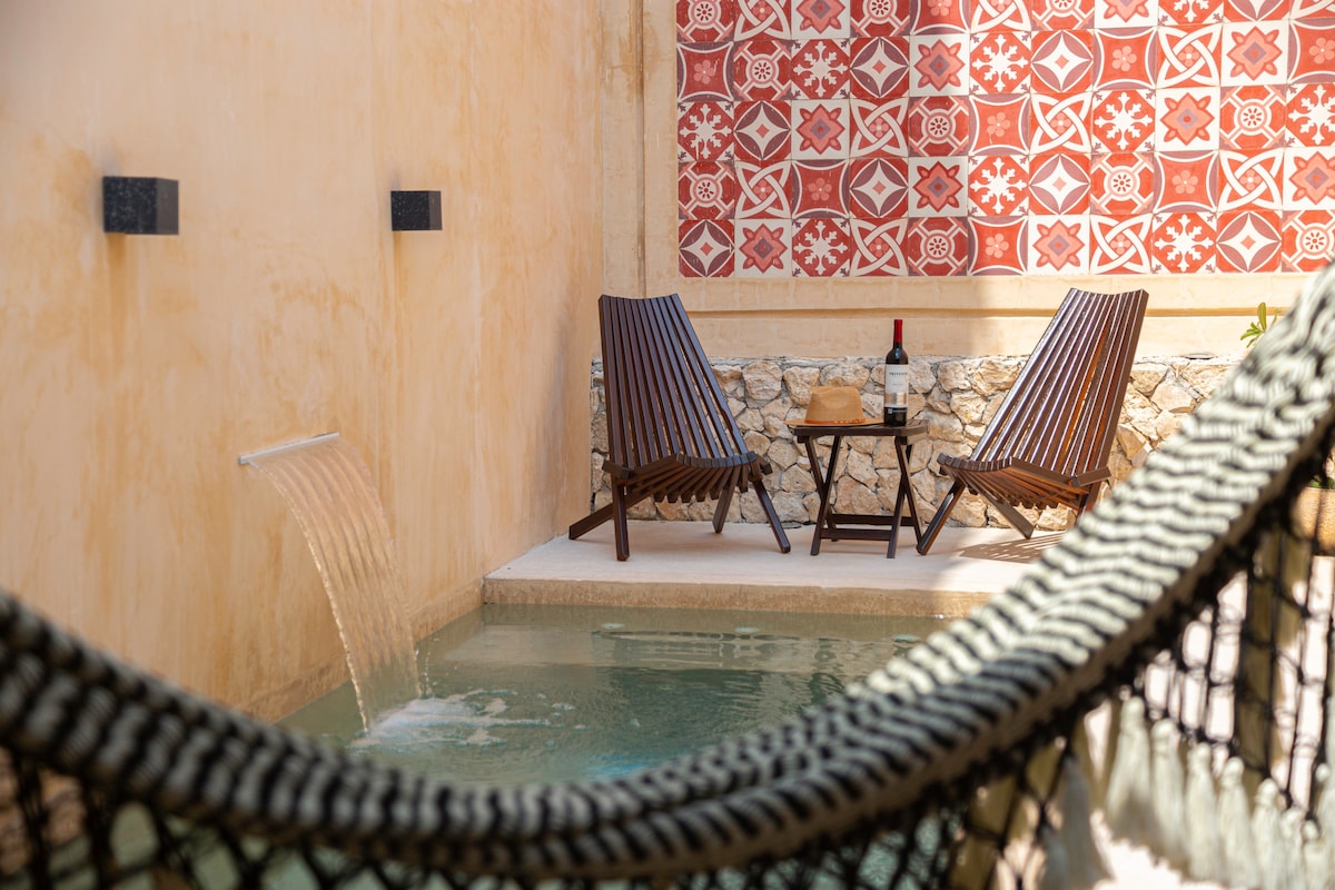 Welcome to Casa Dalí! A romantic getaway in the heart of Mérida, steps from Paseo Montejo. Beautiful home with high-speed internet, TV, equipped kitchen, king-size bed overlooking the pool, sofa bed, and air conditioning. Breakfast for 2 included at Esquina 47 Coffee & Sandwich Lab: 1) Sweet waffles with strawberries & banana + American coffee; 2) Red chilaquiles with chicken & beans + American coffee. Not available on Sunday’s