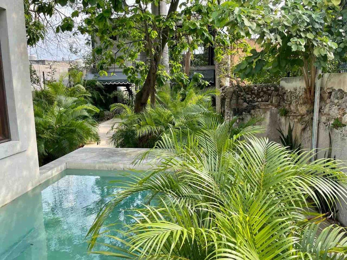 Welcome to Casa Dalí! A romantic getaway in the heart of Mérida, steps from Paseo Montejo. Beautiful home with high-speed internet, TV, equipped kitchen, king-size bed overlooking the pool, sofa bed, and air conditioning. Breakfast for 2 included at Esquina 47 Coffee & Sandwich Lab: 1) Sweet waffles with strawberries & banana + orange juice + American coffee; 2) Red chilaquiles with chicken & beans + orange juice + American coffee