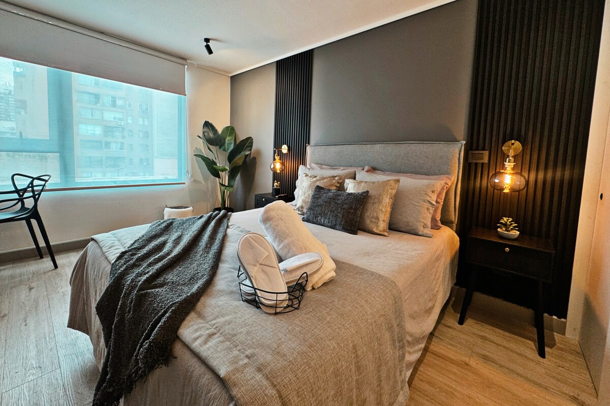 Moderno y acogedor departamento con aire acondicionado en el corazón de Santiago. A pasos del metro y del Centro Histórico, rodeado de museos, mercados y restaurantes. Cama king, cocina equipada, balcón y wifi rápido, ideal para viajes o estadías largas. Edificio seguro con conserje 24/7. Atención personalizada, check-in flexible y recomendaciones locales para que disfrutes la ciudad como un residente, con comodidad y tranquilidad.