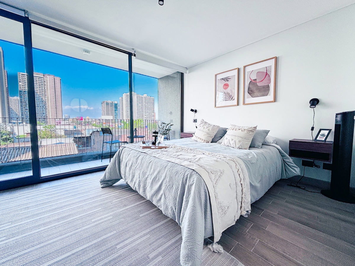 Amplio, céntrico y verde!, podrás disfrutar del fácil acceso a todo 👮 auto check-in 24 horas 🚇 A pasos del metro Ecuador y San Alberto Hurtado en Alameda. 🧺Toallas y ropa de cama 🛋️ Cama doble y sofá cama ❄️ Aire acondicionado y calefacción split inverter 12.000 BTU 🧑🍳Cocina full equipada. 🪟 ventanas termo panel PVC 🔑Acceso cerradura digital 🛜 Internet de fibra óptica con wifi rápido 🪟Balcón 🛒 a pasos de supermercado, Teletón, Red Salud, mutual, ACHS. 🌱 edificio O2