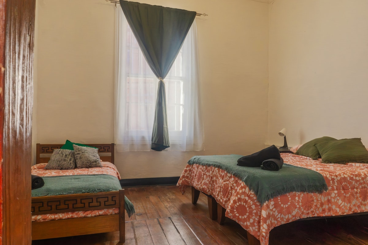 Luminoso loft de 80 m² en el 3° piso, ideal para una persona que busca tranquilidad. Cuenta con 1 cama de 2 plazas y 1 de 1,5 plazas, baño privado, living, mesa, escritorio y cocina equipada. Excelente luz natural, buena temperatura todo el año, estufa, ventilador y agua caliente. Incluye aseo y lavado de ropa semanal. Espacio amplio, íntimo y funcional, pensado para descansar, trabajar y desconectarse de la rutina. Desayuno inlcuído de lunes a domingo.