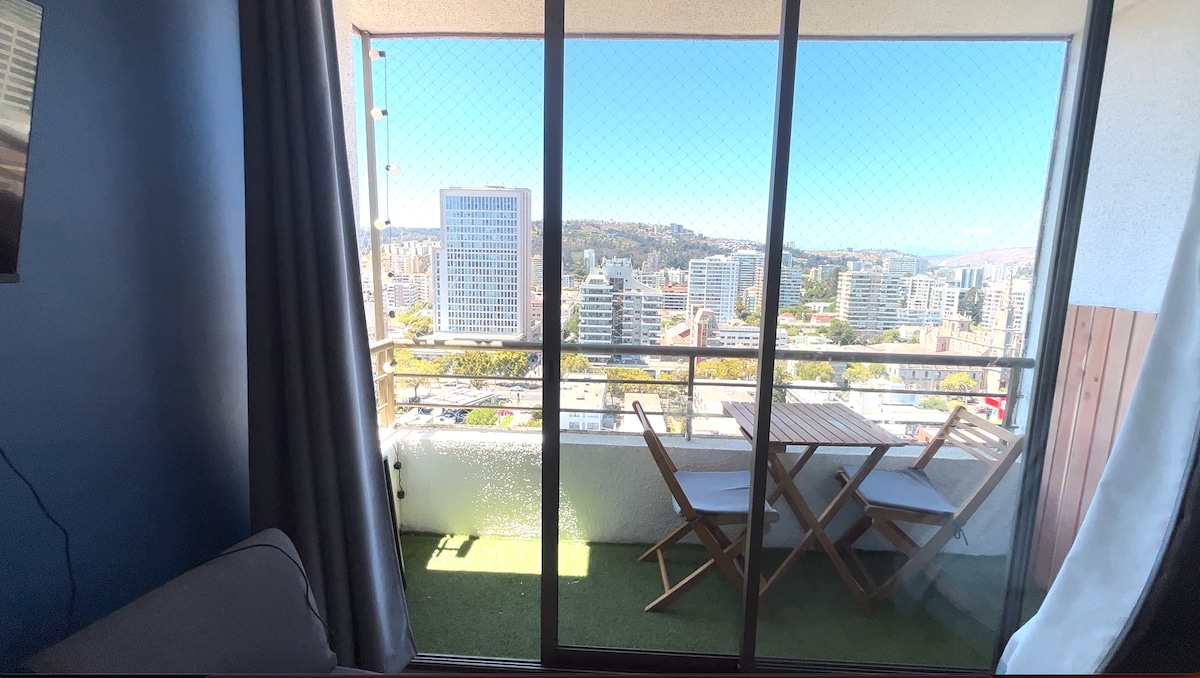 Modern and bright apartment in the best area of Viña del Mar. Steps from the beach, restaurants, cafes, and the city's casino. Ideal for couples and families looking for comfort. Perfect location to enjoy the city without having to use a car. It features a fully equipped kitchen, Wi-Fi, a heated pool, and a barbecue area that can be reserved exclusively for the apartment.