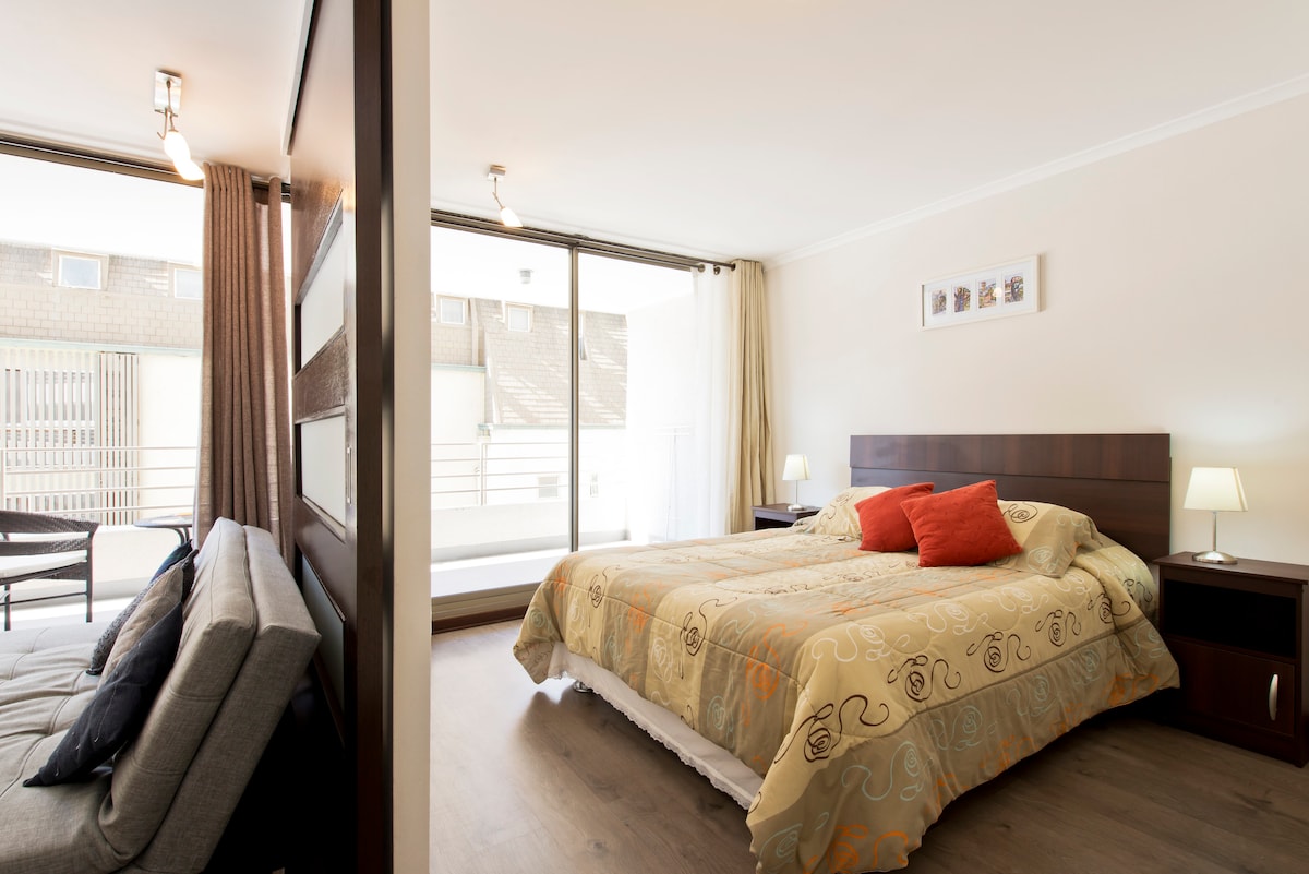 Departamento en el centro de Viña del Mar para 4 personas, 1 dormitorio y 2 sofá cama. Cocina y 1 baño. TV, wi-fi, lavadora y secadora (con monedas), piscina y estacionamiento. Acceso controlado 24 hrs. Acceso a locomoción pública y metro, en una zona segura. Aire acondicionado en dormitorio principal Actualmente la piscina está cerrada.