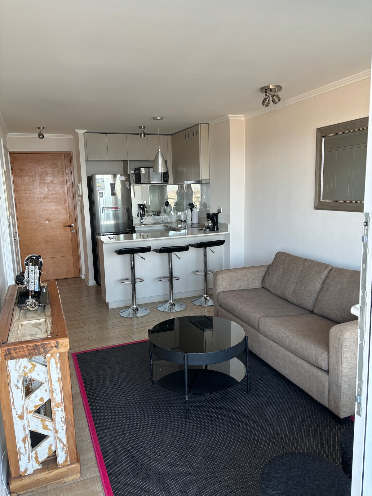 🤩COMFORTABLE AND NEW🤩 Apartment by the beach, 17 floor 🅿️Free Parking ✅Pool additional payment, 1 courtesy income 🏋🏻Gym 💨Sauna additional payment 😉Beautiful view of the city of Viña ✅It has heating and everything necessary for a comfortable stay 🔔Access by electronic lock 🚨No visits can be received ‼️All guests must register your ID to enter 🚭Prohibited smoking 🧳We store your luggage 📦We receive your online purchases