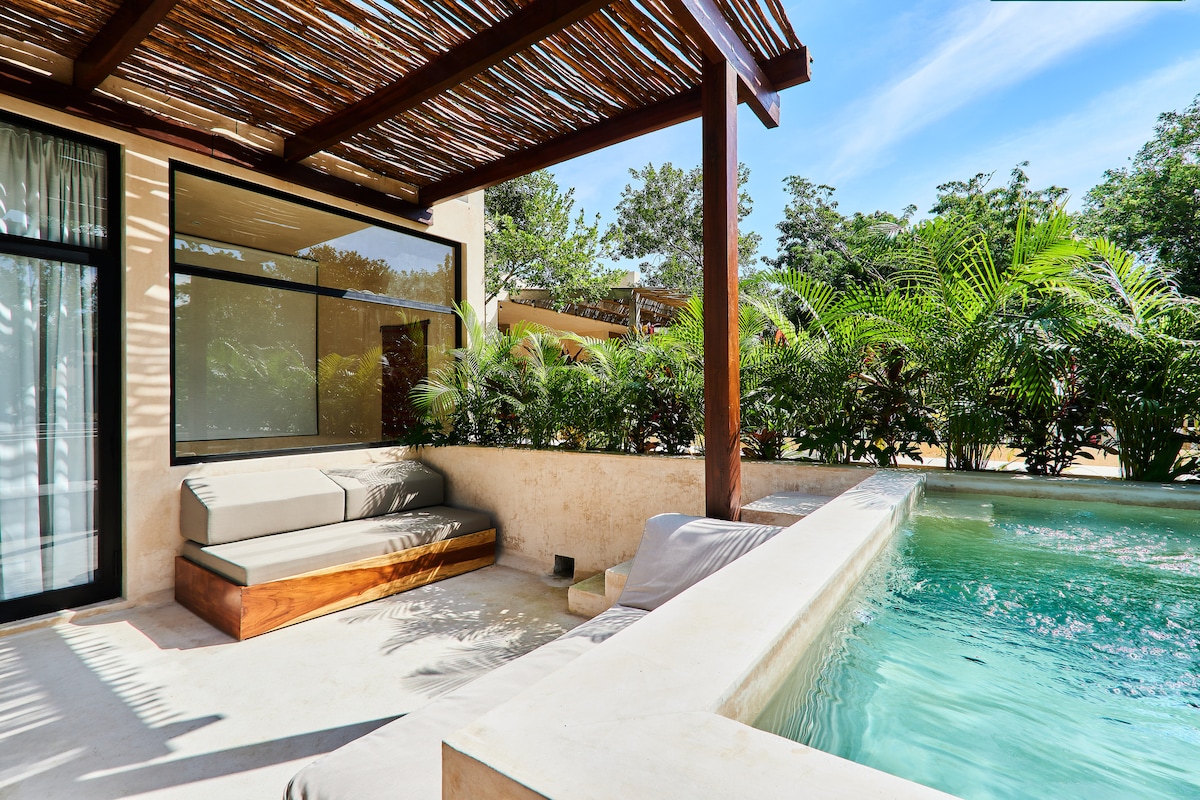 🎉Live the Dream in Tulum!🌴 Escape to this boho-chic Loft in Tulum's exclusive ADORA community. 💎✨ Imagine yourself lounging by your private plunge pool, or taking a magical dip in a crystal-clear cenote steps from your door 🚪 ✨💦This elegant space is designed for ultimate relaxation, with all the amenities you need for an unforgettable getaway🧘♀️ The hottest beach clubs are just minutes away !🏖️ Let our concierge curate your perfect adventure✌️Book your escape to paradise now! ✨