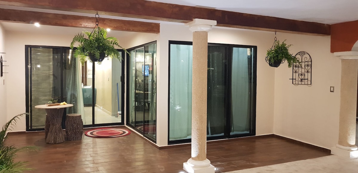 Beautiful luxury house with Mayan and hardwood style. A authentic Prehispanic experience. The suite has a equipped kitchen , bathroom, bedroom with smart TV ,and closet, private terrace and garden and a large shared pool chlorine free. Hermosa suite de lujo con acabados en maderas preciosas y estilo Maya. Una autentica experiencia mexicanca estilo prehispanico. Cuenta con cocina equipada,baño completo,recamara con Smart TV y closet,terraza y jardin privados y gran alberca sin cloro , compartida