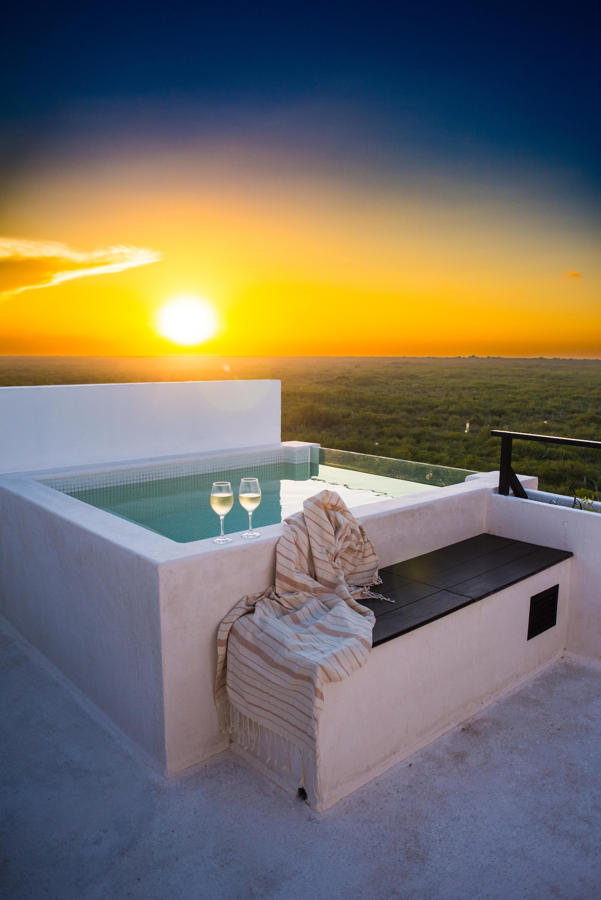 Indulge in wellness at BABEL Tulum, featuring a private jacuzzi and breathtaking views of the oasis. Adjacent to a tower with hammam, pool, and communal jacuzzi, immerse yourself in ultimate relaxation and beauty. Revel in its interior design, meticulously crafted for this project, where the colors of BABEL's chukum walls change with every hour of the day. We offer a service to heat the private pool for an additional cost of $25 USD per day. Steam Room 30 USD hour, not included in price.
