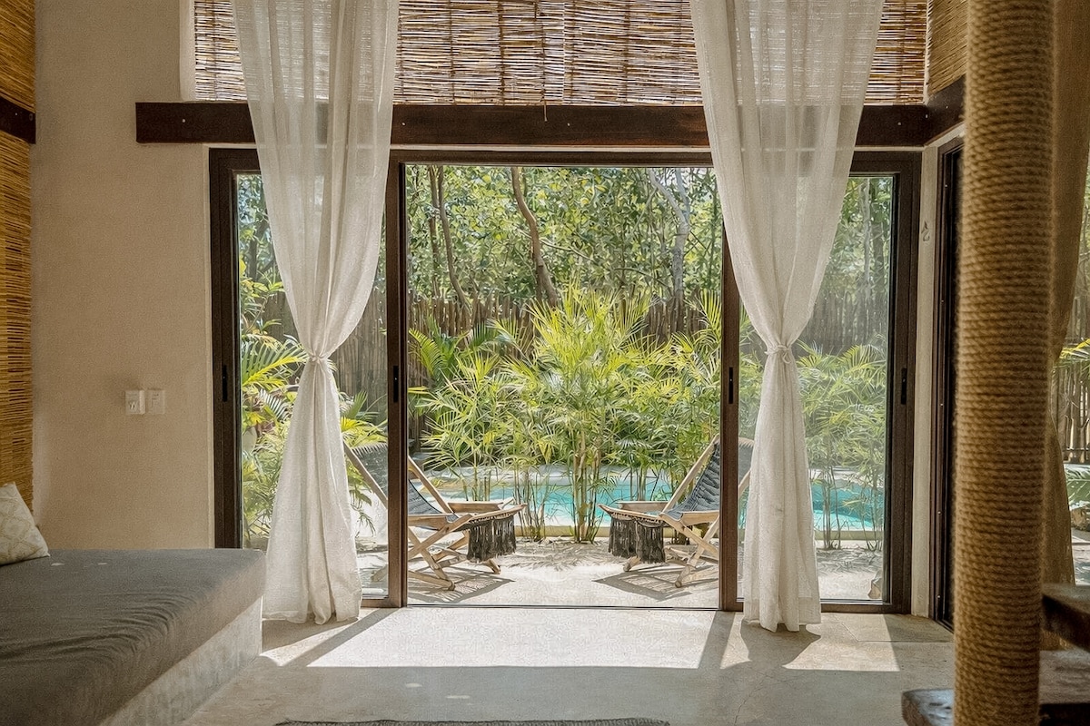 Casa Gaia is a dreamy beachfront bungalow where the turquoise Caribbean greets you at your doorstep. Nestled in tropical greenery, this romantic seaside hideaway feels like a private sanctuary. From your bed or living area, watch waves sparkle by day or glow under the moon. Swim in the seaside pool, dip in the sea, and relax on loungers under the palms. Casa Gaia sits very close to the sea - the most romantic escape on Tulum Beach.