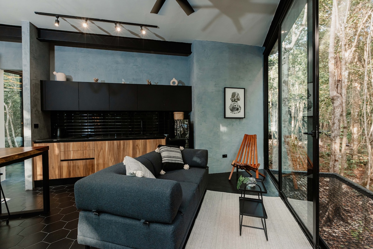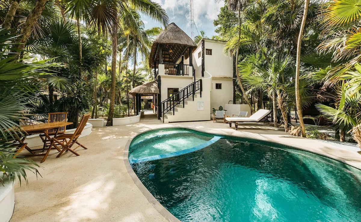 Relájate en esta escapada única y tranquila, y adentrarte en la naturaleza y tranquilidad, deja que tus sentidos exploren sus máximas conexiones con todo lo que esta propiedad tiene para ofrecer desde un espacio lleno de paz y tranquilidad donde podrás escuchar ver y sentir lo que tiene la Selva de la Riviera Maya atesorado en sus entrañas. A tan solo una distancia en auto de 5 minutos de la Playa y con todo lo que pudieras ocupar estamos ansiosos por recibirte. .