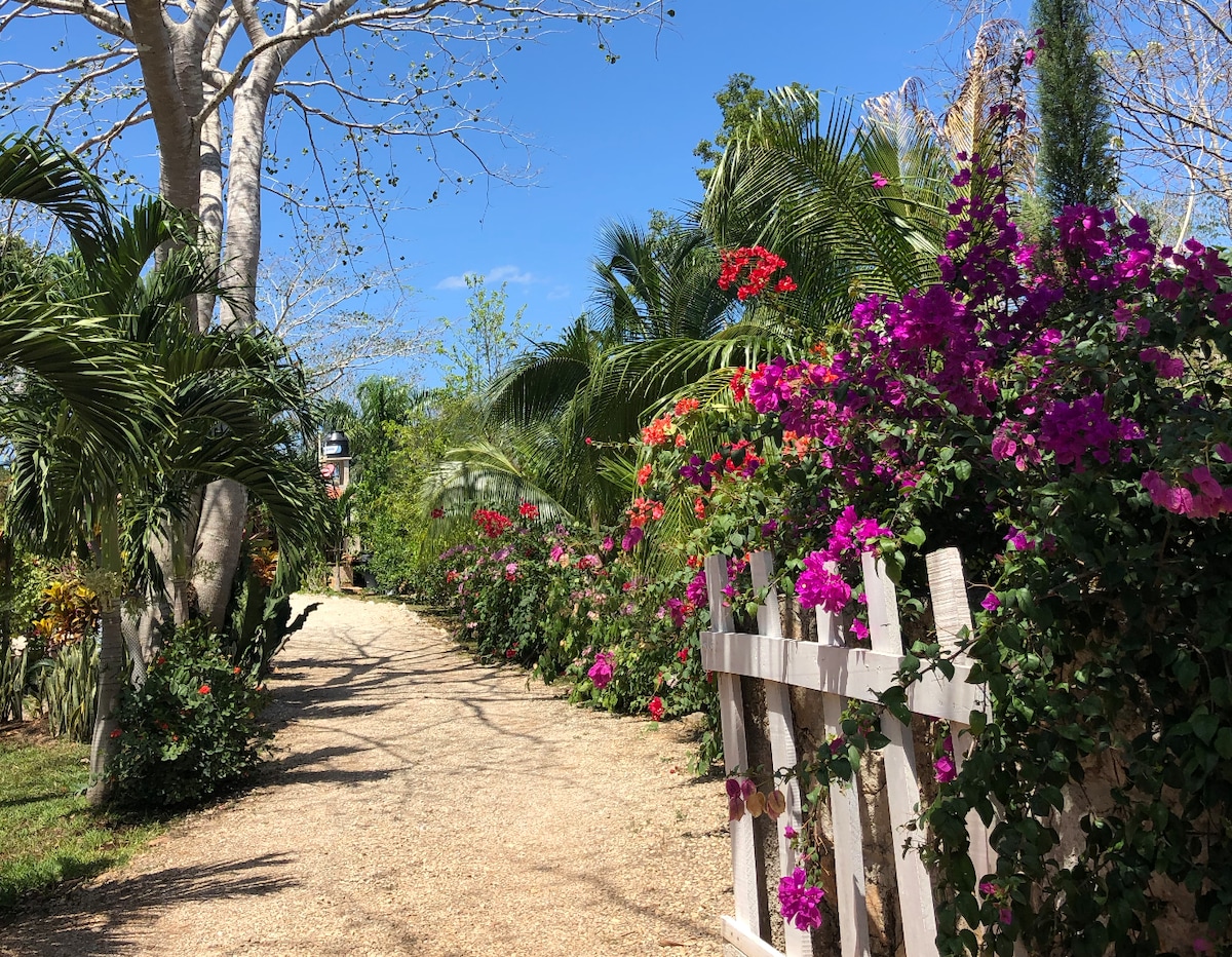 LAKEFRONT SECLUDED HIDEAWAY WITH PRIVATE ACCESS to LAGUNA BACALAR- Escape to your own private oasis .! Our Cabaña is the ultimate hideaway, nestled at the end of our spacious gardens and completely hidden from view. With just three villas on our 500 feet of lakefront, you'll feel like you have the entire lake to yourself. Inside, is a full size bedroom and a double futon in the living area. The kitchen fully equipped. Air conditioning. Great internet. Plus a private patio.