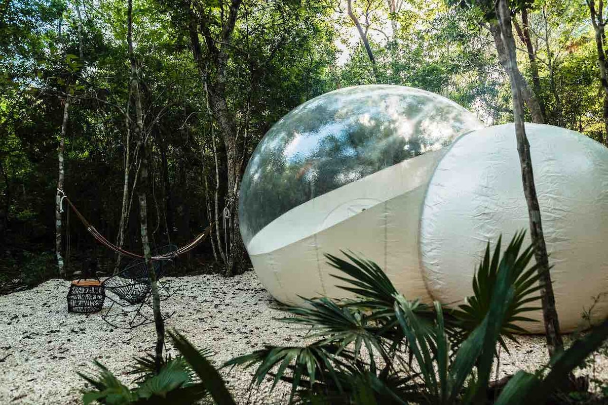 Come and sleep under the starts in the Mayan Jungle. Ever wonder what it was like to live in a bubble? Come and live the unique glamping experience! Sleep under the stars in an inflatable Bubble Tent and try something you've never experienced before in the Mayan Jungle. The place is located on the famous "La Ruta de los Cenotes" where you can visit the spectacular sinkholes or if you wish to pop down to the beach you can reach it within 15 mins.