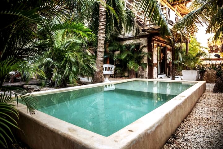 Our home is build by bungalows split in a tropical jungle - garden. Feel part of the community. We share local experience, hammocks, trees, wild birds, fruits, home, family and tropical feeling.. Basically the local lifestyle. Place has been cleaned and disinfected with commercial-grade cleaning products. Location 5 Min drive from Downtown Playa del Carmen 40 Min drive to the airport (Transportation Available) 35 Min drive to Tulum 20 Min drive to Akumal
