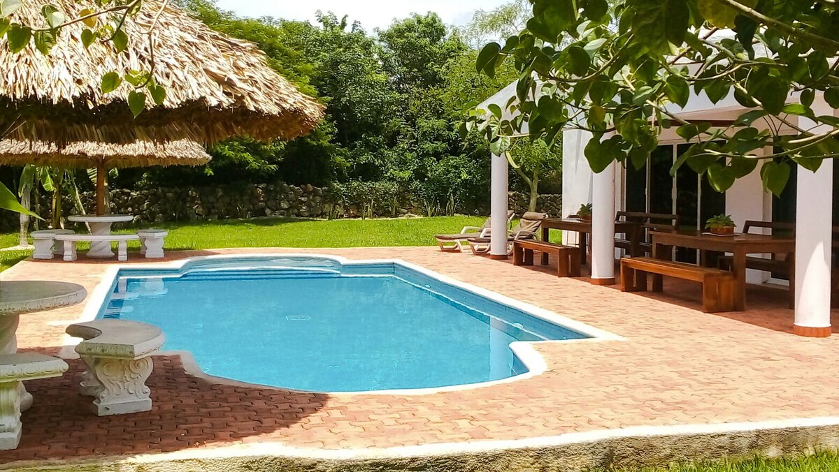 Bienvenidos a la naturaleza! Hermoso bungalow exclusivo, solo hay 2 habitaciones a 6 kms de Chichen itza. Cenotes y grutas en la zona. A/C, agua caliente, baño con ducha, privado. WiFi, Bello jardin rodeado de arboles frutales y pajaros. Ubicado en el pueblo maya parlante de Xcalacoop. Located on small Mayan village , cozy and beautiful Mayan bungalow surrounded by flora , frutal trees and singing birds, only 6 kms away from Mayan site, cenotes on the area, private bathroom , hot water. WiFi