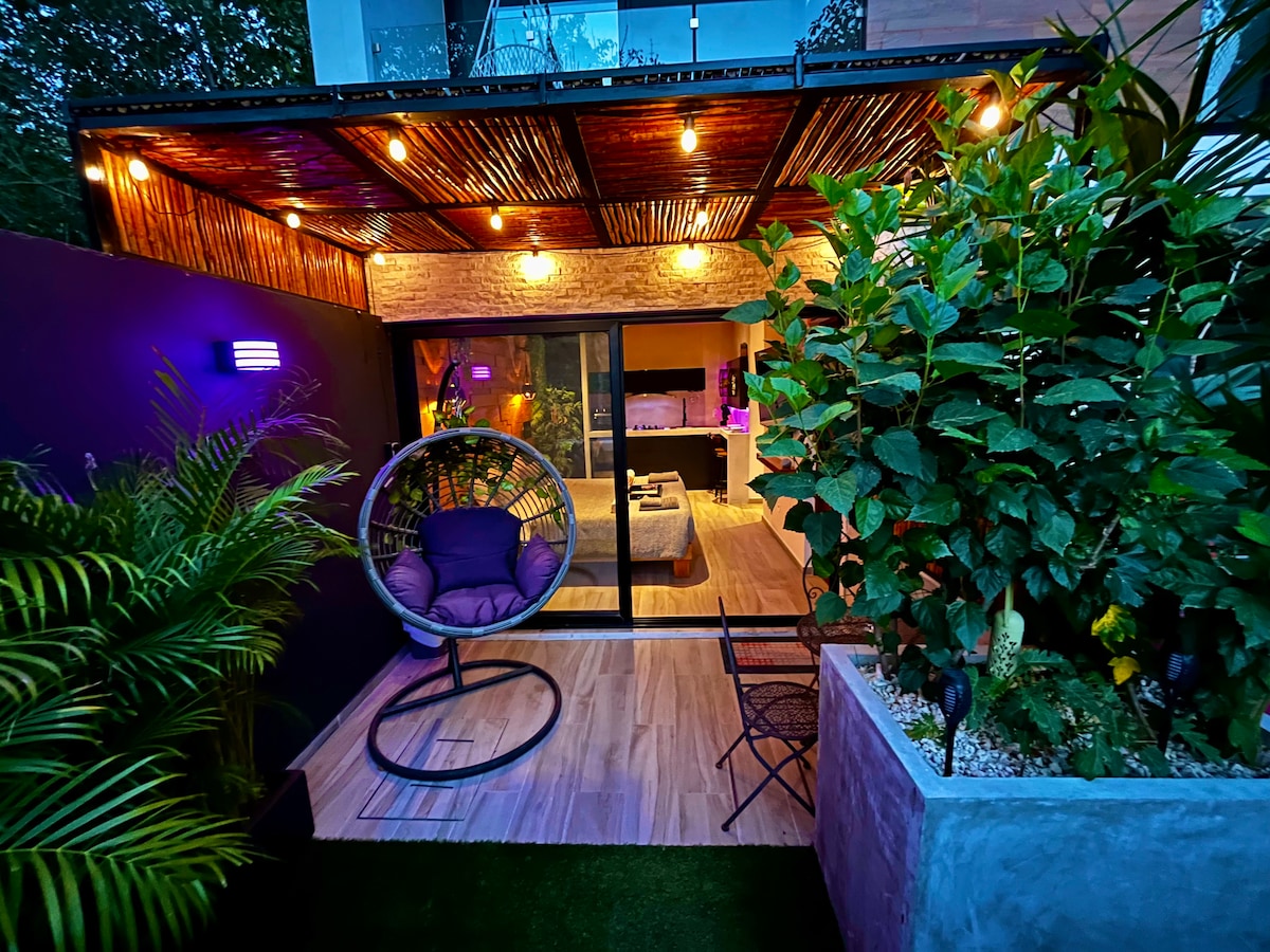 This studio apartment is suitable for our guests to enjoy a local experience in downtown Tulum and at the same time be just minutes away from its magical beaches and everything Tulum hotel zone offers. We think about every detail to satisfy the needs of all types of travelers. Whether you come on vacation or/and work our place is for you. It is located in Menesses Tulum, a place where you will find gym, cinema room, relaxation area, pools and more.