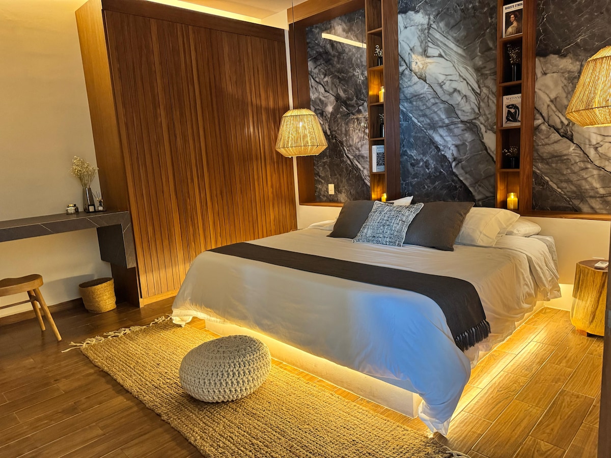 @thestrelitziaproject 🏆 The highest rated Airbnb in Playa ⭐️ Fully en-suite smart studio room with kitchenette within a private home valued at $1m+ Wake up in a memory foam bed to views of a stunning natural cenote and infinity pool with your own private outdoor breakfast bar & terrace, 4K TV, Netflix included, Alexa-controlled lighting, iPad controls, Starlink WiFi, motorized blackout blinds, kitchenette, and more. We also offer car rental! Ask about potential construction before booking!