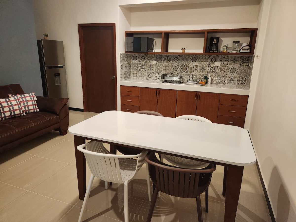 Tap the heart icon to add this loft to your wishlist! Located in La Veleta neighborhood, our loft offers fast fiber optic internet for productivity. It sits just 2 blocks from 7 Sur, the main avenue surrounded by restaurants, bars, and shops and granting easy access to downtown in 4 minutes and the beach in 12. Across the street find a 7 Eleven with an Oxxo just a block away. Your check-in guide includes a list of chefs for in-home dining and taxi/private drivers for local and airport transport.