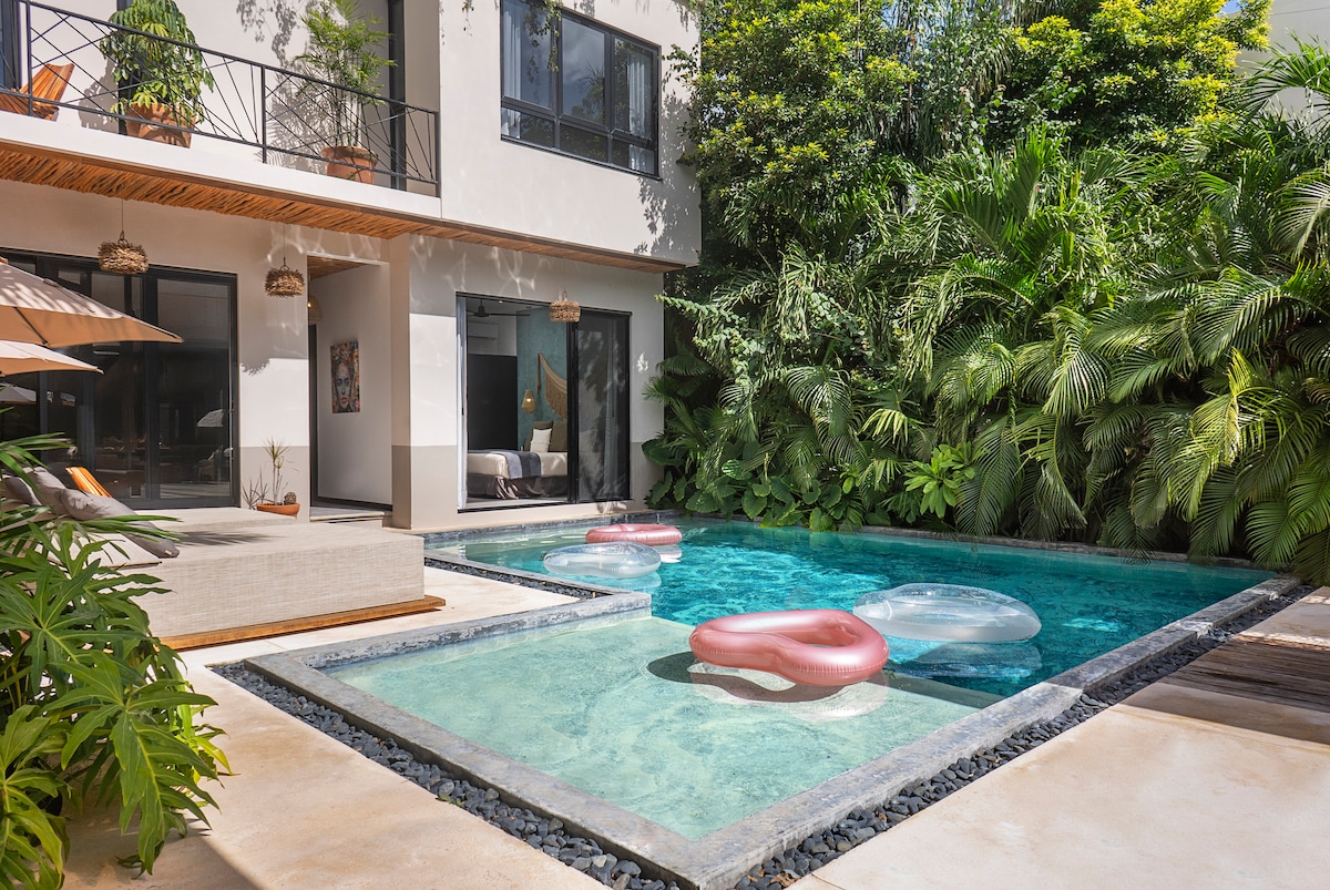 Welcome to Soul Stay Tulum - a private, service-driven retreat designed for relaxed days and memorable moments in La Veleta. Enjoy the comfort of a dual-studio villa with outdoor living and thoughtful hosting. - Sleeps 6 | 2 bedrooms | 3 beds | 2 baths - Private outdoor pool & fully fenced backyard - Dual-studio layout with kitchens & dining - Outdoor kitchen, BBQ & jungle patio - Dedicated workspace, wifi & self check-in - Beach access & beach essentials