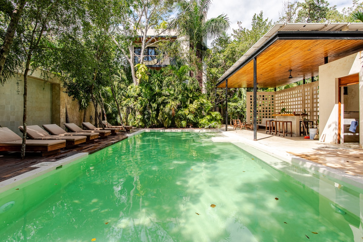 浪漫温水泳池别墅|时尚图卢姆度假胜地