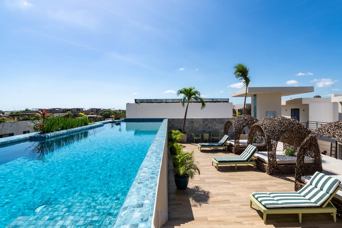 1卧室天空顶层公寓,带私人屋顶和跳水泳池