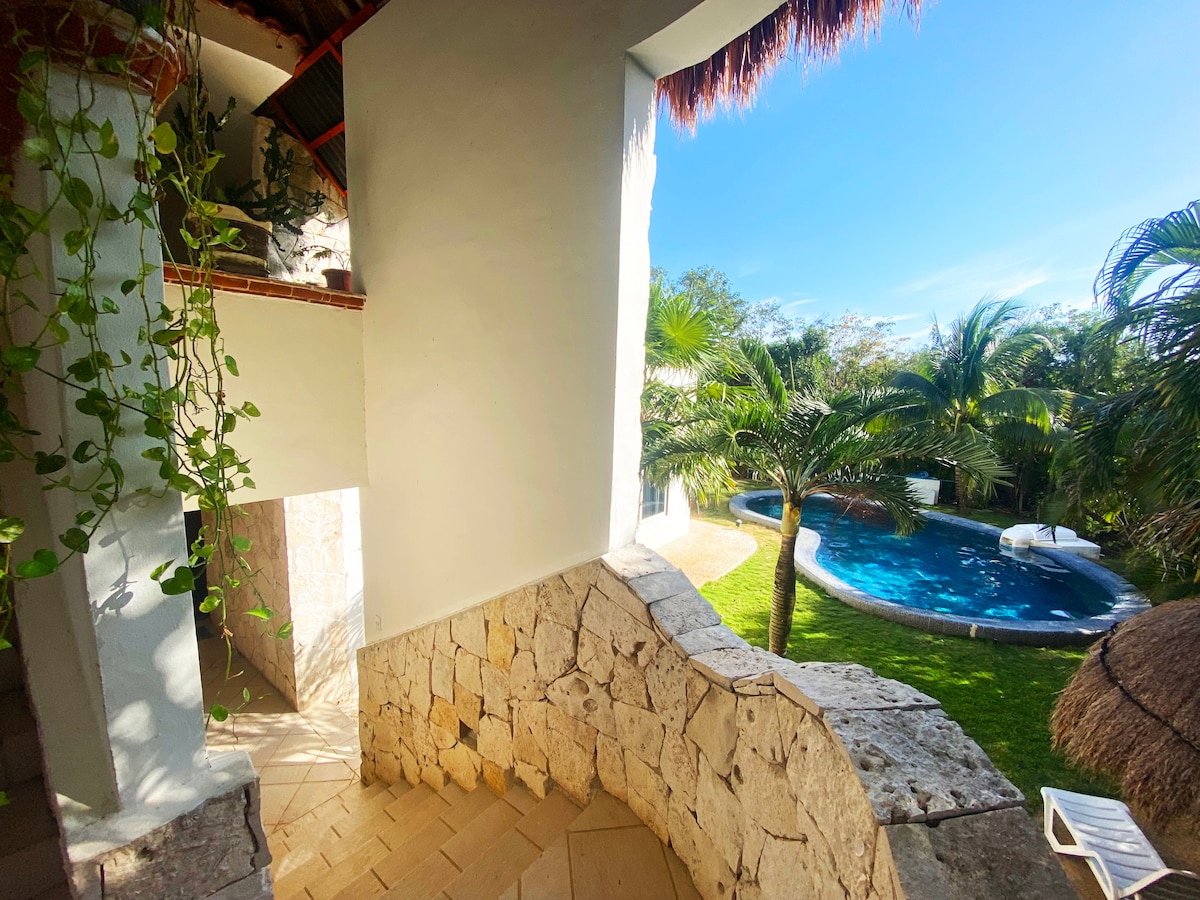 Hermosa villa en Condominio horizontal con total privacidad, seguridad y atención 24 hrs. Piscina XL, jacuzzi y jardín exclusivo para los huéspedes de la villa. A pocos pasos de restaurantes y locales, del Centro de Tulum. Ofrecemos servicios opcionales como transfer del aeropuerto, renta de bicicletas, masajes, chef y excursiones. NO hay construcciones cercanas, por lo disfrutarás tranquilamente tu estancia. Todas las habitaciones tiene baño privado y vista hacia la alberca y jardín.