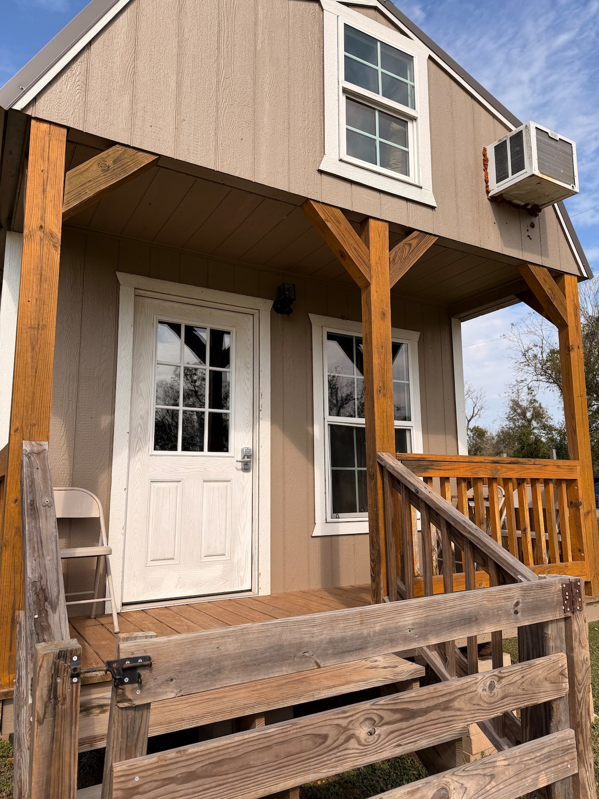 The Barracks @ Cedar Oaks Inn Step into history with this restored 1917 Ellington Air Force base cabin. Filled with antiques and original art, it blends timeless charm with comfort. Enjoy the back courtyard with outdoor kitchen, fireplace, water feature, and a unique garden bath featuring side-by-side clawfoot tubs and an open-air shower. Sip coffee or wine on the front porch while watching the chickens. Dog-friendly (30 lbs or less), this retreat is as quirky as it is relaxing.