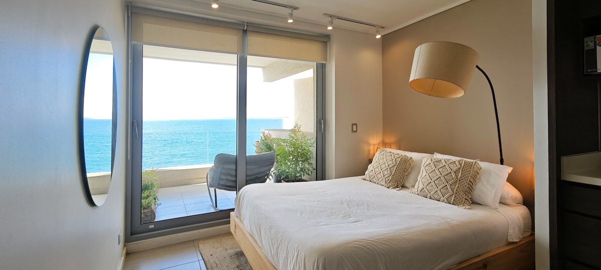 ¡Bienvenido a nuestro acogedor departamento en primera línea de playa en Reñaca! Disfruta de una vista impresionante del océano desde cada rincón. Características: Ubicación Ideal: A pasos de la playa y cerca de restaurantes y tiendas locales. Comodidades Básicas: Wifi, Smart TV. Equipamiento completo para 6 personas. Estacionamiento para 2 autos.
