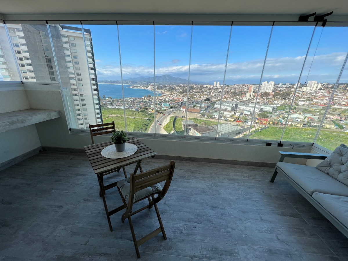 Wonderful apartment located in Costa Montemar (Concón) with an incredible and privileged view. Steps away from pharmacy, supermarket, and shops. Decorated, furnished, and equipped by professionals with high-quality furniture and details, for you to arrive and enjoy an excellent stay, ideally as a couple. It has private parking, wifi, and a smart TV. Equipped with a hairdryer, sheets, and towels.