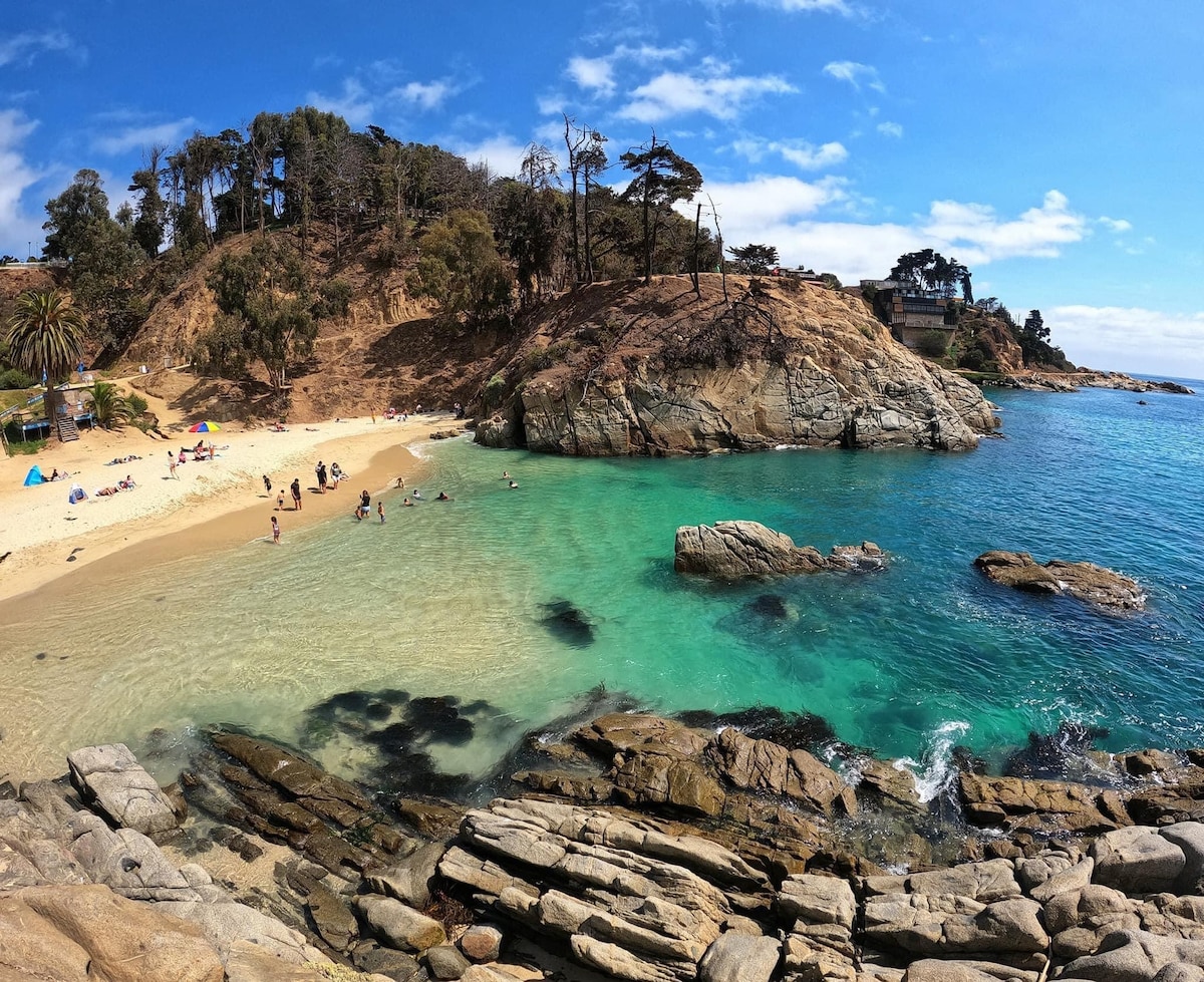 Este encantador y exclusivo lugar para quedarte no pasa por alto ningún detalle. En plena avenida principal y cruzando la calle la principal playa de Quintero. También tenemos la seguridad de nuestros vecinos los marinos, lo cual, es la zona más segura para los turistas. Los comentarios nos avalan solo queda que reserves y disfrutes junto a nosotros. Te esperamos sean todos bienvenidos