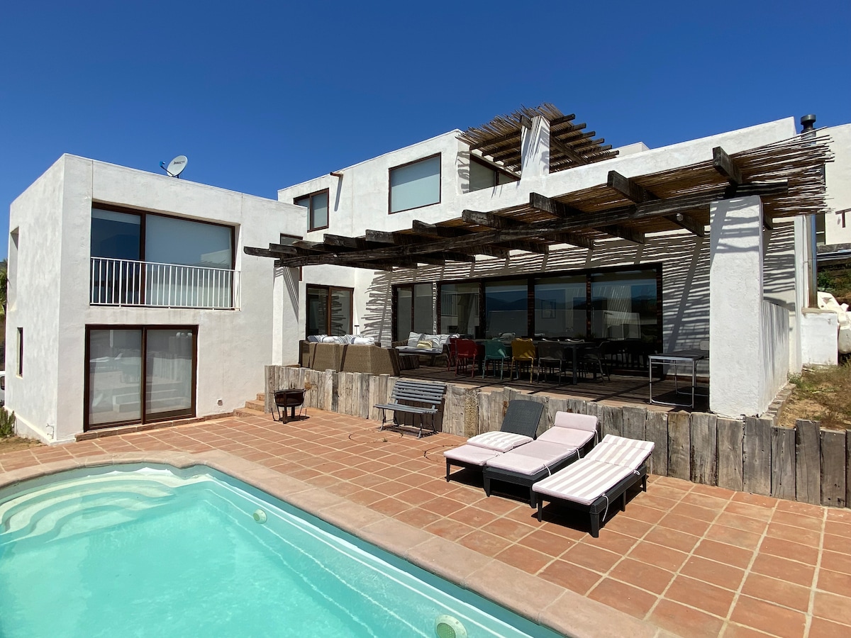 Hermosa gran casa entre Puchuncavi y Maitencillo, Gran piscina a temperatura ambiente. Tinaja Caliente (40°), Mesa de Pool, Tenis de mesa, Dardos, Casa de muñecas, Quincho, y fogon A 11 min de la playa en auto (8 km) Rodeaba de bosque, gran jardin de pasto capacidad para 14 personas en 5 piezas (3 matrimoniales, 2 de ellas en suite) muy comodamente. Wifi (Starlink 150mb)