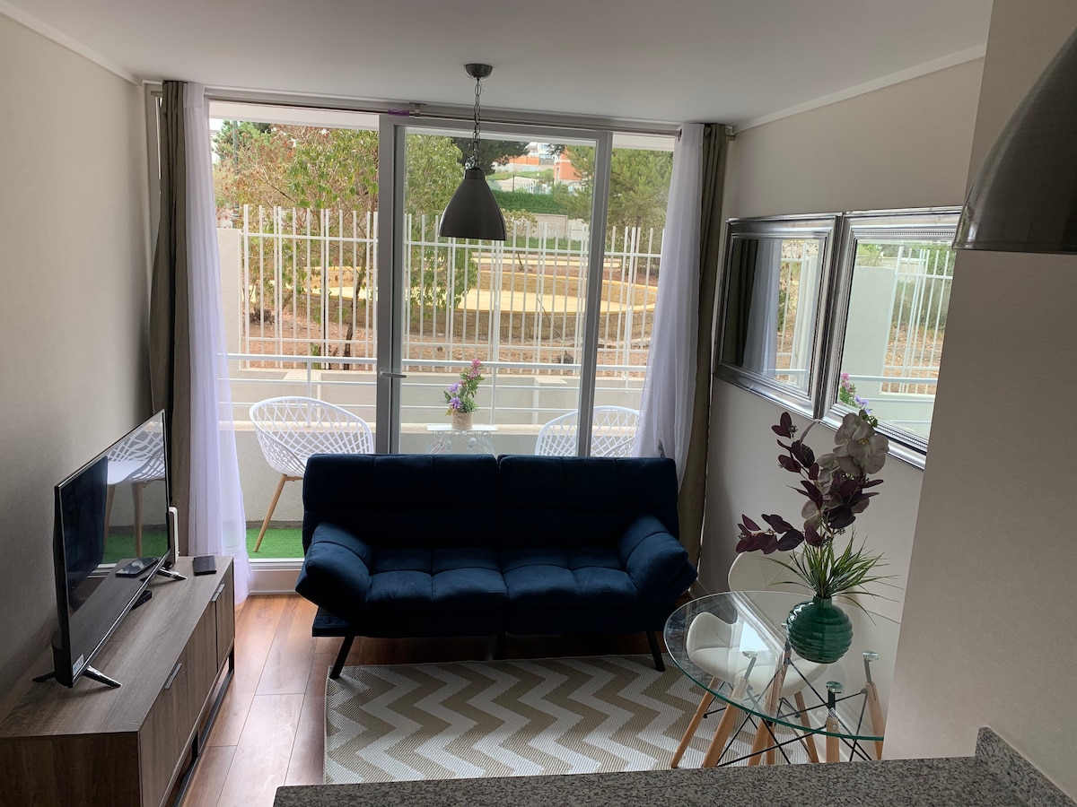 Hermoso apartamento nuevo y acogedor ideal para 2 personas. Ubicado en Costas de Montemar, donde podrás relajarte y disfrutar de un espacio cómodo y de un entorno tranquilo con áreas verdes. Estarás muy cerca de supermercados, bares y restaurantes de gran variedad gastronómica, a pasos de las dunas de Concón y a minutos de la playa. El departamento cuenta con estacionamiento, dormitorio con cama king, baño, wifi, 2 TV, cocina equipada, piscina y una linda terraza con espectacular vista al mar.