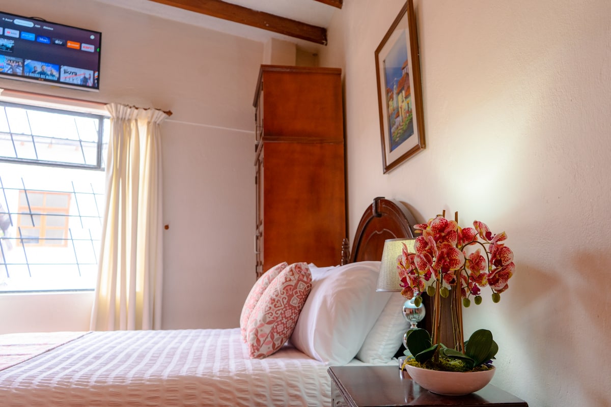Charming and cozy single room in a restored colonial mansion in Quito’s Historic Center. Enjoy comfort, privacy, and security with shared access to 3 bathrooms and 3 showers for 6 rooms. Free Wi-Fi, and a quiet atmosphere ideal for solo travelers. Walking distance to plazas, museums, and colonial churches. Safe, clean, and full of character.