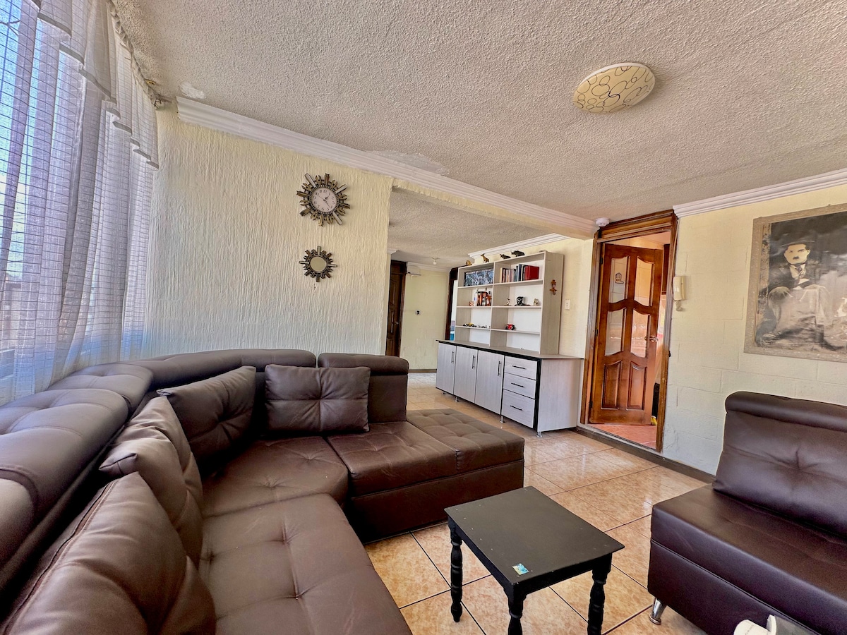 Acogedor alojamiento de 130 m2, bien iluminado con una vista espectacular CON ASCENSOR y PARQUEADERO GRATIS para 2 autos Disfruta de amaneceres inigualables y la puesta del sol en un lugar tranquilo, fácil y rápido acceso caminando a todo. A 2 min caminado del Hosp. de los Valles, Scala Shopping, panaderías, farmacias A 5 minutos de la USFQ A 20 min del aeropuerto Parques para caminar, juegos infantiles, parque exclusivo de mascotas, restaurantes, peluquerias y comercios con fácil acceso.