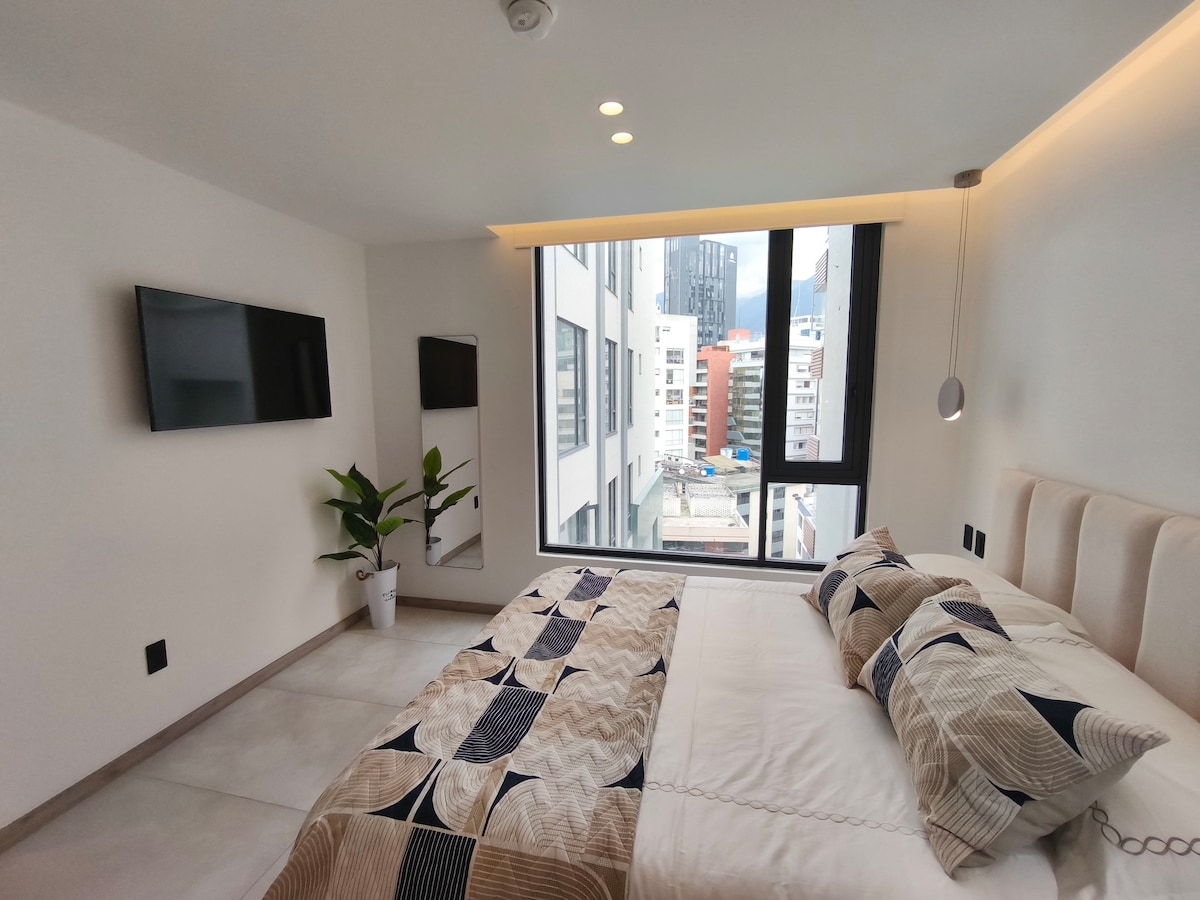 Amazing one bedroom apartment with modern architectural design. Excellent location, walking distance to - La Carolina park - 5 shopping malls - 3 supermarkets - Just were the "boulevard de las Naciones Unidas" begins - Super High Speed Internet at 100mbps up/down speed connections - 2 Amazon Fire TV's - Playing room - GYM, - 2 Smart TV's - Full kitchen. Coffee shop in the ground floor and free parking on premises for 1 car.