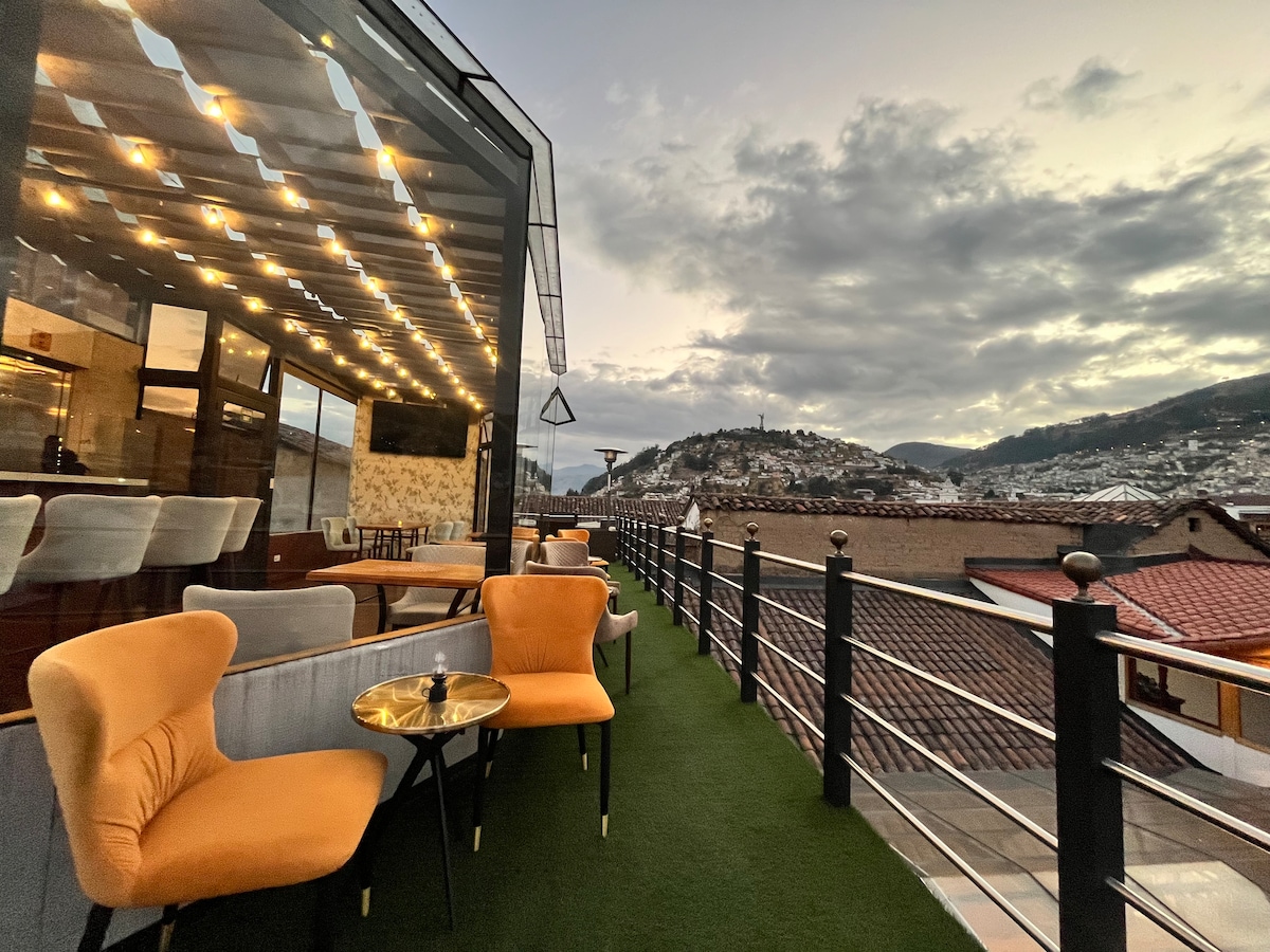Suites modernas y acogedoras en pleno Centro Histórico de Quito. Disfruta de una decoración sobria y elegante, pensada para ofrecerte confort y estilo. A pocos pasos de plazas, iglesias y museos, vive la experiencia de alojarte en el corazón de la ciudad, con todo lo que necesitas para sentirte como en casa.