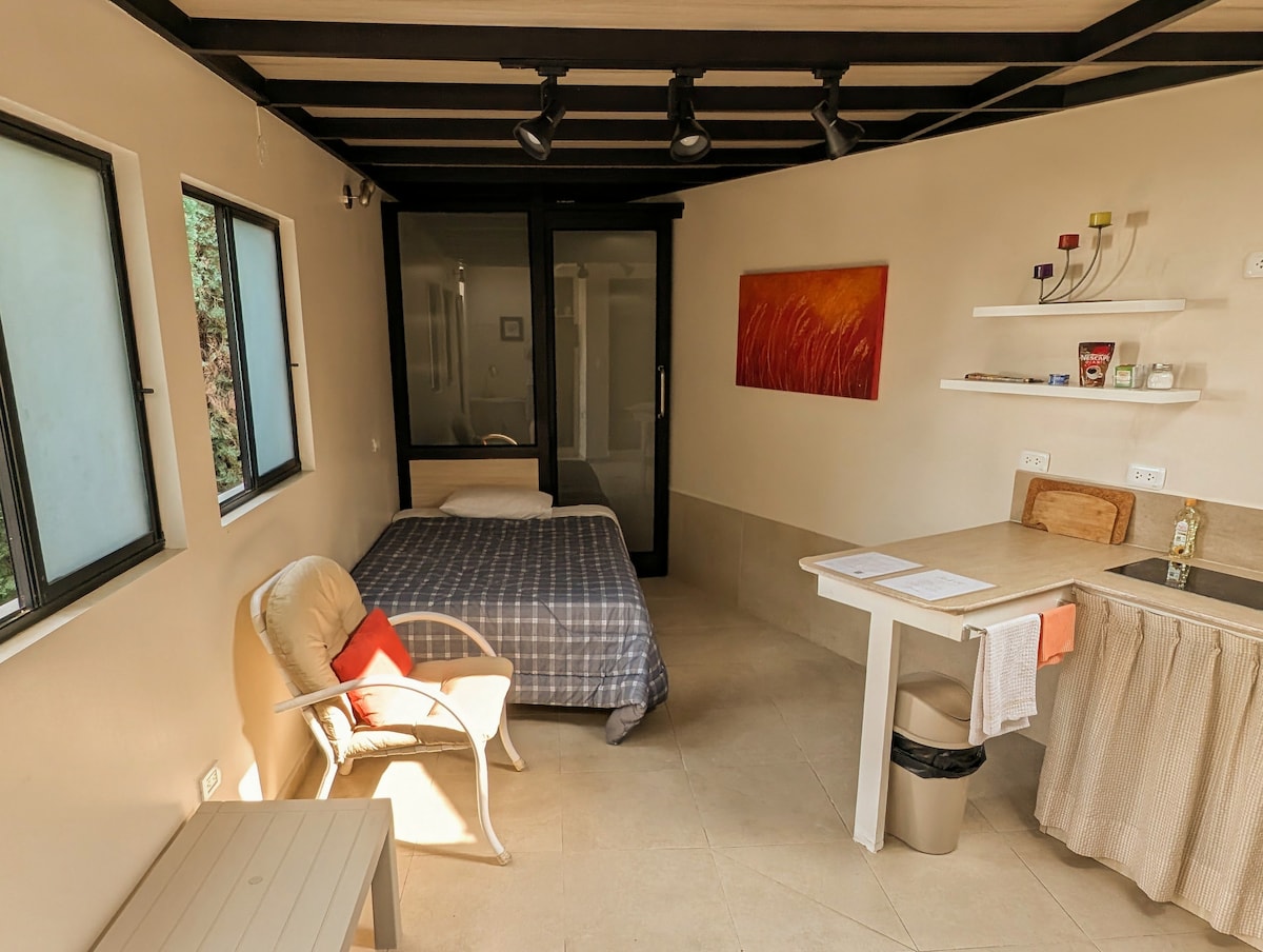 Suite privada e independiente, rodeada de naturaleza y con vista relajante, ubicada a 20 minutos del aeropuerto. Ideal para parejas o viajeros que buscan descanso, privacidad y fácil acceso a la ciudad. Cuenta con: -Parqueadero gratuito -Cama queen size con ropa de cama premium y cortinas oscuras -Cocina equipada -Baño privado con agua caliente -WiFi rápido -Smart TV -Café de filtro y azúcar Disfruta del jardín y área de fogata en un ambiente tranquilo y seguro, con clima espectacular.