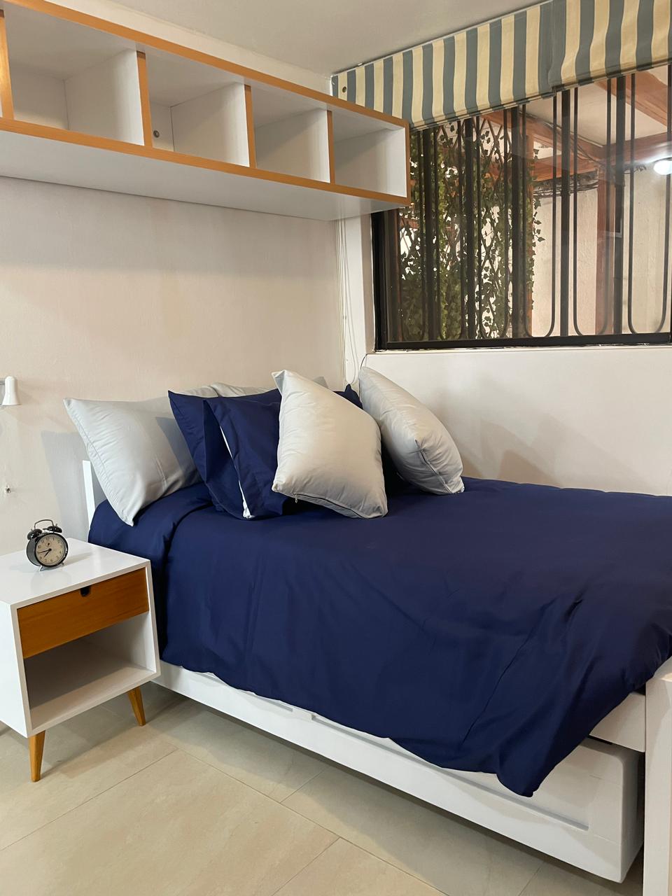 Descubre la comodidad y seguridad de este acogedor departamento en el vibrante norte de Quito. Este espacio es ideal para aquellos que buscan una experiencia de alojamiento acogedor. El departamento se encuentra en un tercer piso independiente. Al entrar, notarás el ambiente confortable y decoracion a detalle. La cocina, sala y comedor al estilo americano, están equipadas con todo lo necesario. La habitación cuenta con una cómoda y amplia cama. El baño es moderno sin perder sus azules retro.