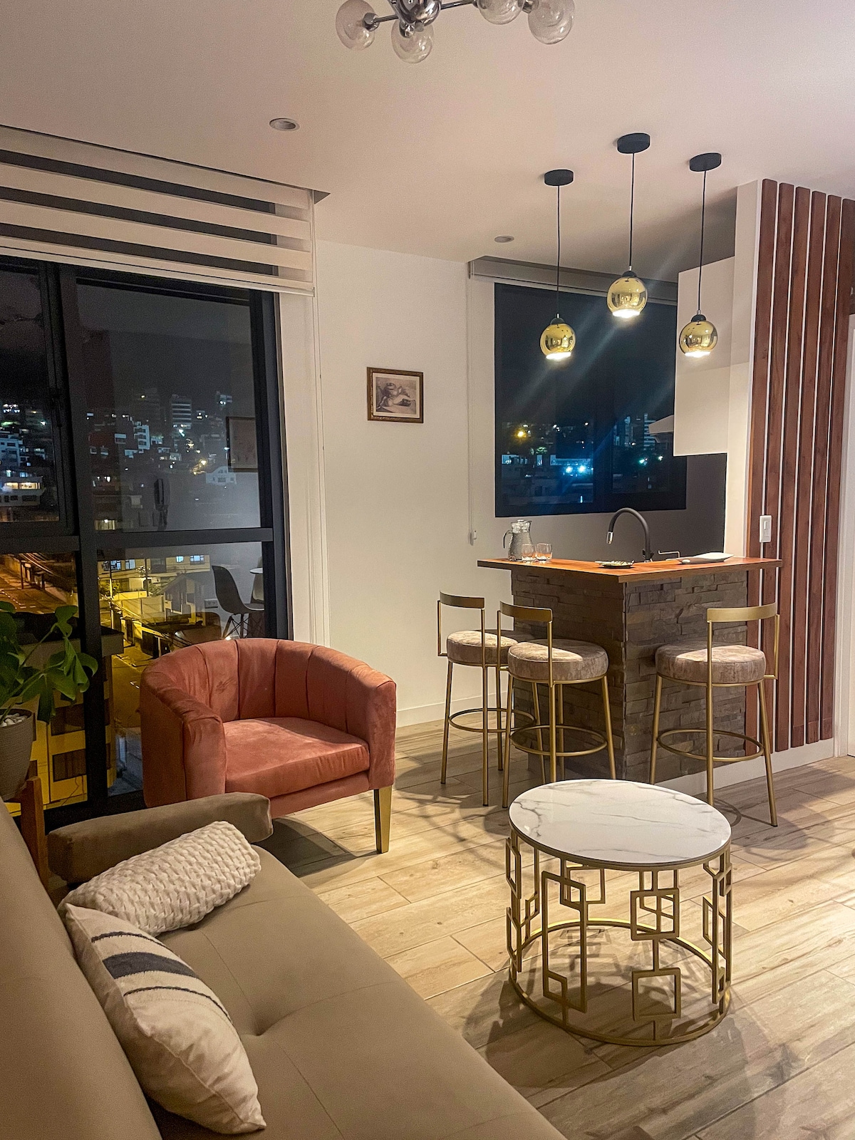 Enjoy a luxury experience at this central accommodation. Designed for an exclusive stay in the heart of Quito, Ecuador, this spacious and cozy place offers all the amenities needed to make you feel at home. Ideal for families and executives, this luxury building stands out for its prime location, just a 5-minute walk from restaurants, cafes, pharmacies, supermarkets, and shopping centers, near La Carolina Park. Welcome to Bleisure Hosting!
