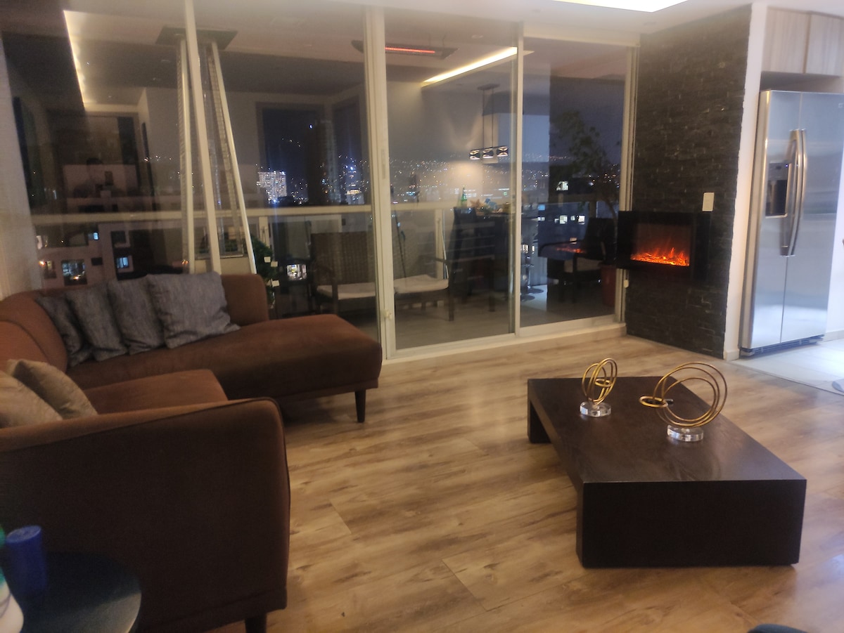 El departamento tiene: cerradura inteligente y acceso con código, cocina, nevera, lavadora y secadora, horno,cocina, bebedero de agua La sala tiene TV de 60" 4K con dirextv Tv, apple TV, netflix, Wifi de alta velocidad 300 mb, un sofá cama, las cortinas son eléctricas, la habitación tiene sábanas, cobijas, cobertores, mantas y toallas nuevas , calentadores electricos, TV de 55" en el dormitorio y con un patio con sillas y parasol privado. Se implemento un vidrio acústico para confort auditivo