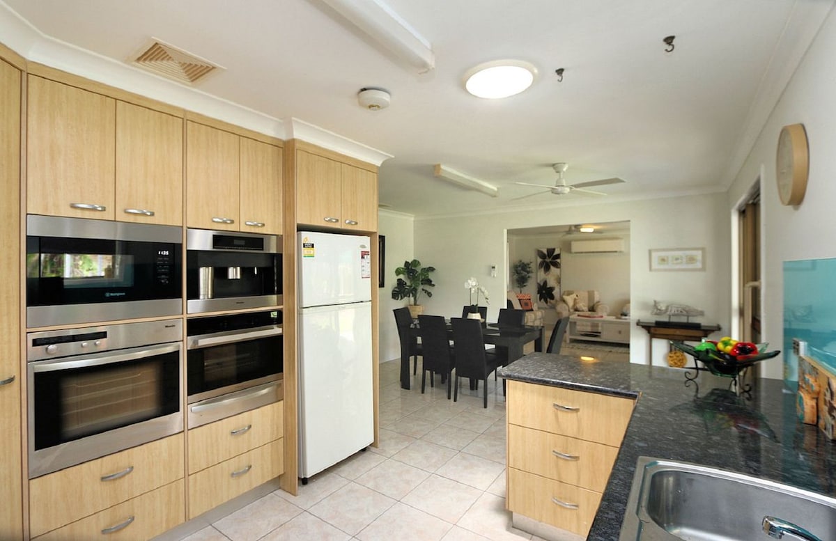 Our Four Bedroom Executive Villa is perfect for the couple getaway or the family adventure! "WOW What A Villa!" is a common entry Statement. With Four Bedrooms a full Chef's Kitchen, Laundry and Swimming Pool, you can't ask for more. Ideally set to occupy 8 guests in existing bedding consisting of either Two x K-One x Q and Twin Singles OR One King, One Queen and Four Singles and the option to pop in a rollaway, we're good to go for family get together's or those of you with loads of kids.